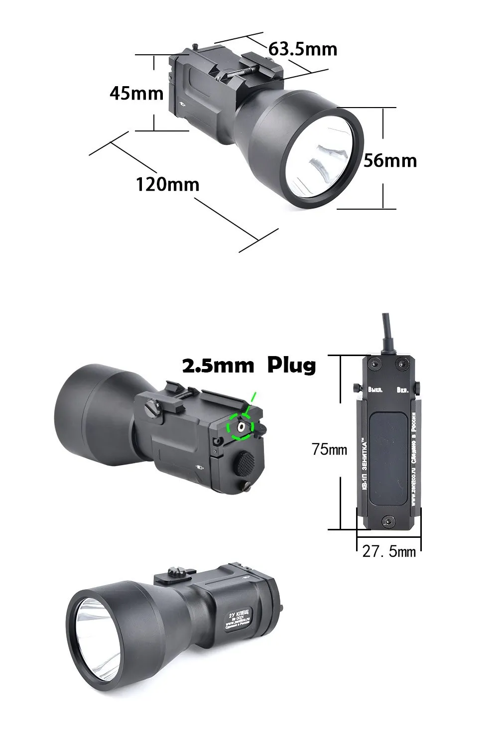 Linterna KLESCH 2U de 900 lúmenes K1 K1S KLESCH-2P Luz blanca LED brillante WADSN Lámpara Scout táctica con soporte extensible de riel de 20 mm