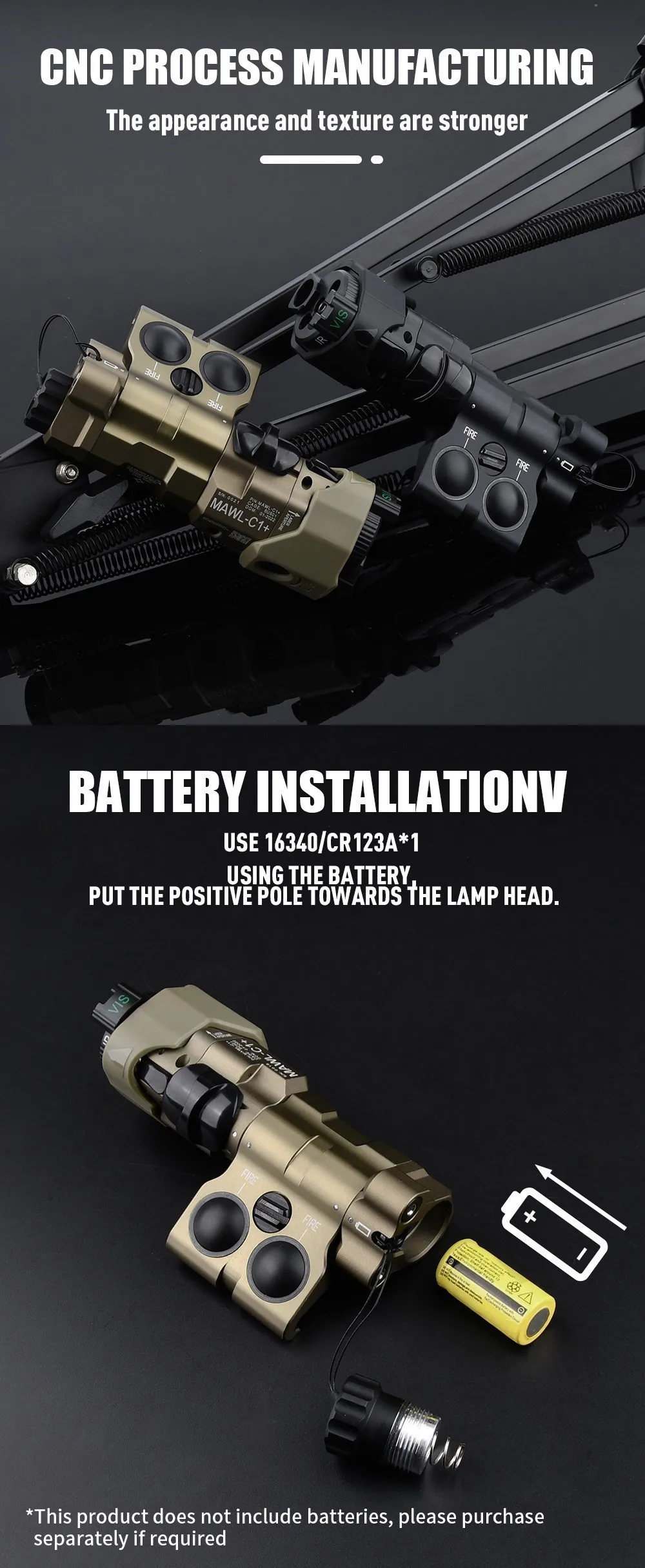 Linterna láser AR15 de Metal para armas, luz MAWL-C1 de punto rojo, verde, infrarrojo, IR, MAWL-C1