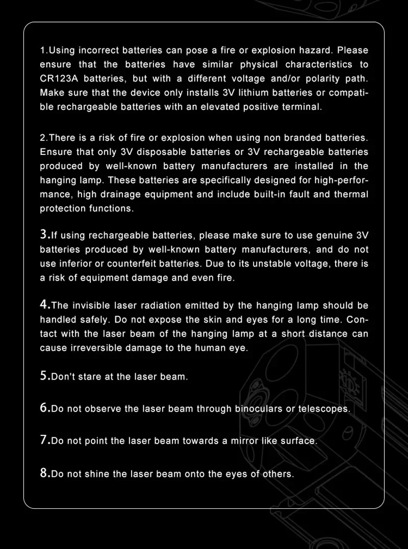 Batería: CR123A (no incluida)