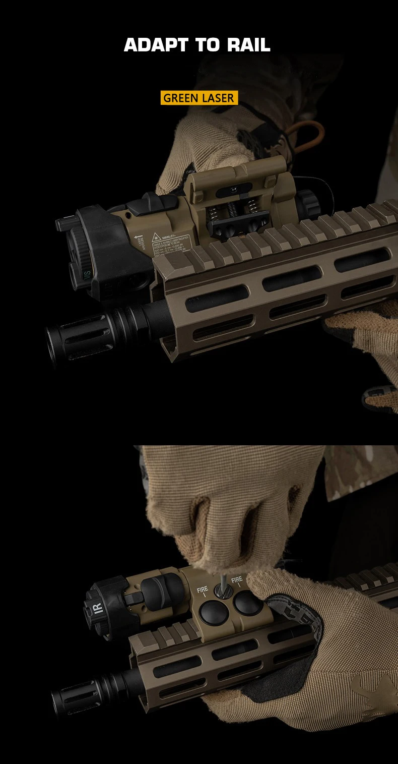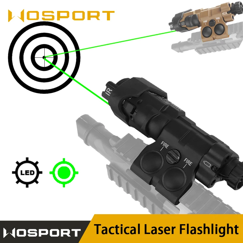 Linterna láser táctica, lámpara LED de caza con montaje en riel Airsoft, linterna láser verde, luz de puntería láser para arma Wargame
