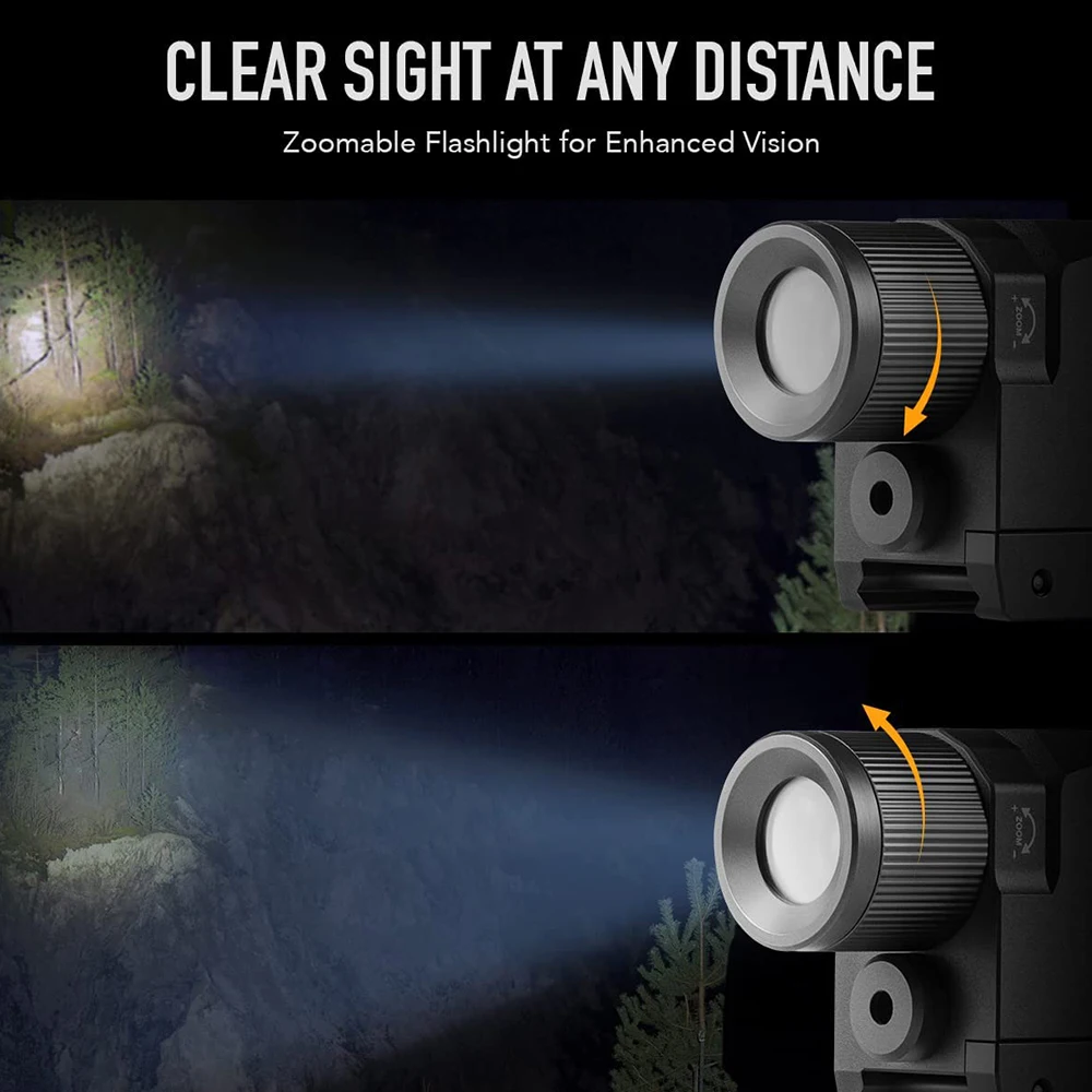 2. 【Linterna con zoom con modo estroboscópico】 La linterna de 800 lúmenes presenta un enfoque ajustable para iluminar objetos distantes o áreas más grandes.También incluye un modo estroboscópico para situaciones de emergencia.