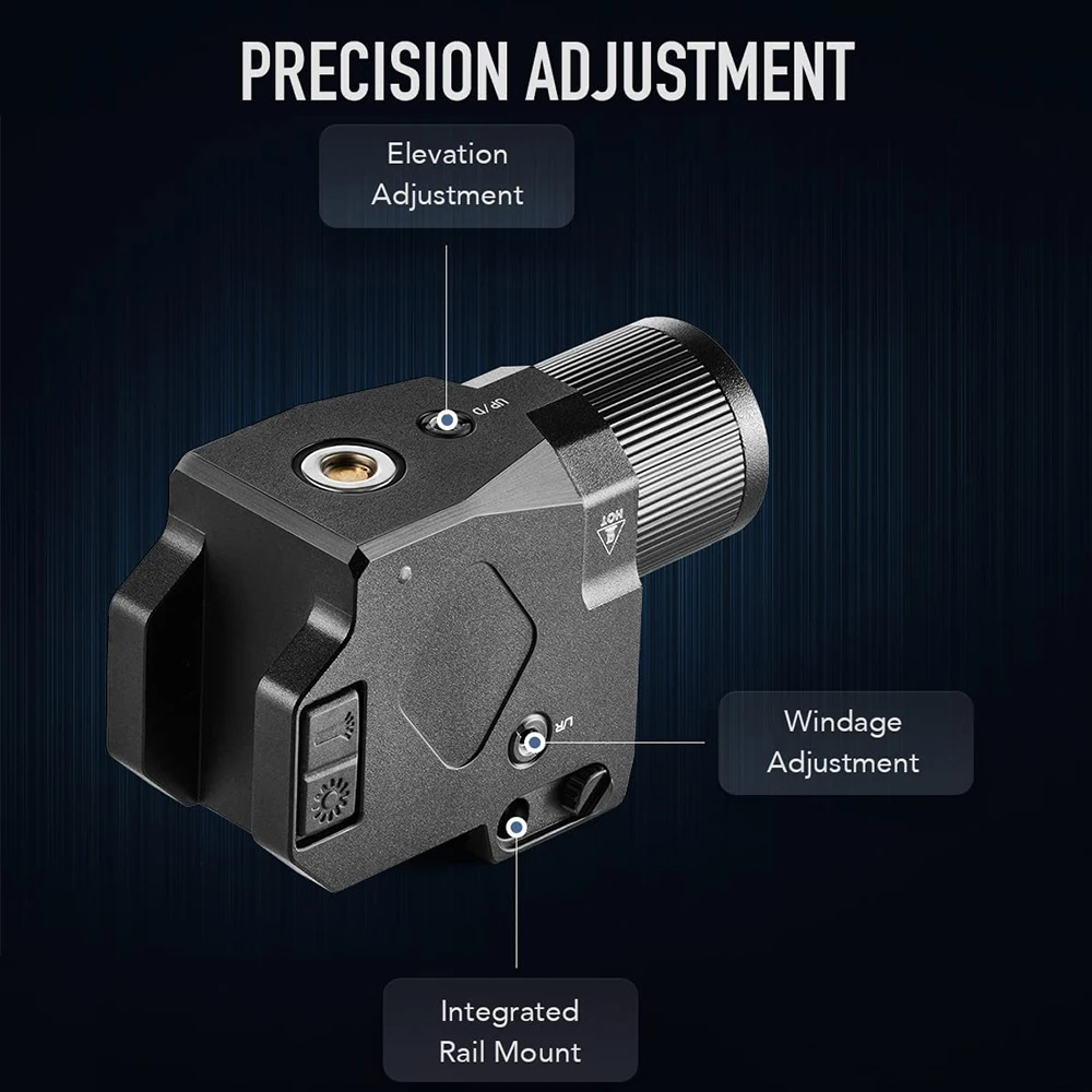 3. 【Láser verde para precisión diurna】 Logre una precisión diurna excepcional con la mira láser verde de alta visibilidad, que presenta ajustes de derivación y elevación para un apuntar con precisión.