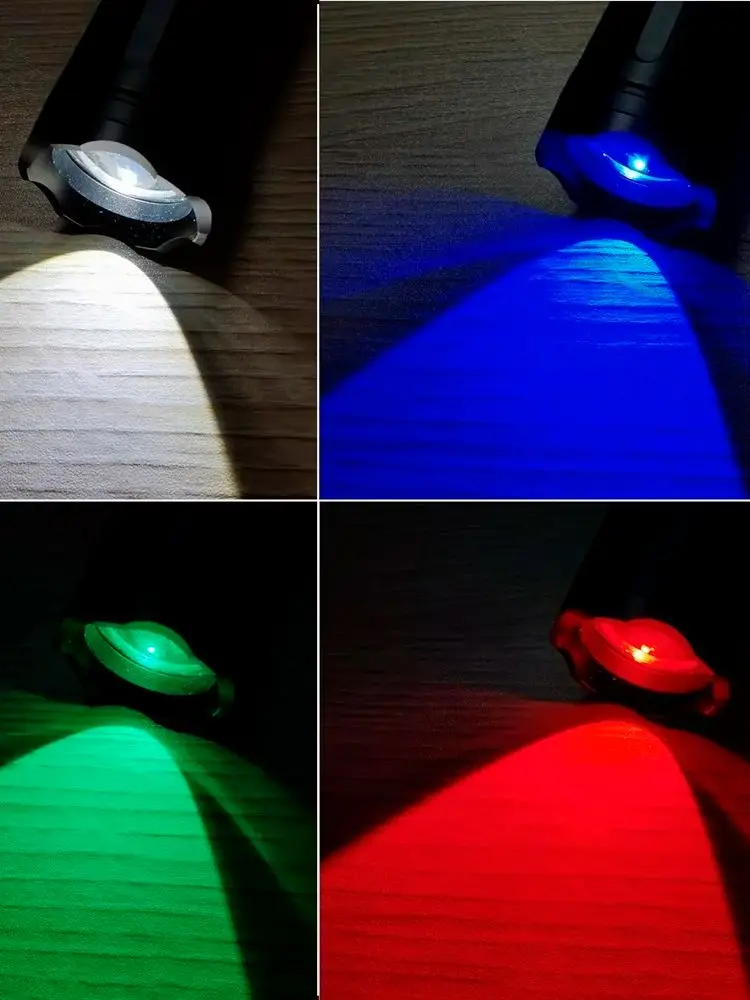 2 en 1 Zoom Rojo + Blanco-Verde + Blanco-Azul + Blanco Linterna de iluminación de alto brillo