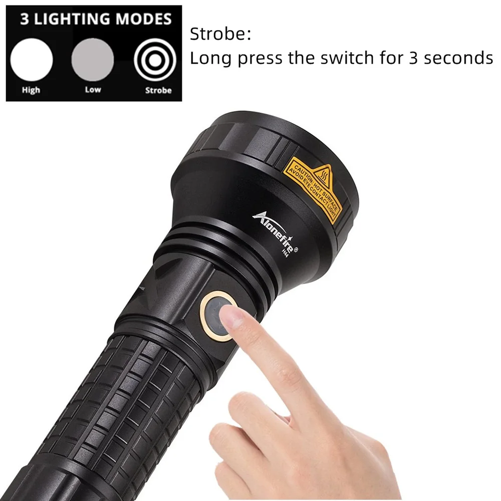 Modo: 3 modos: Alto - Bajo - Estroboscópico (mantenga presionado durante 3 segundos)
