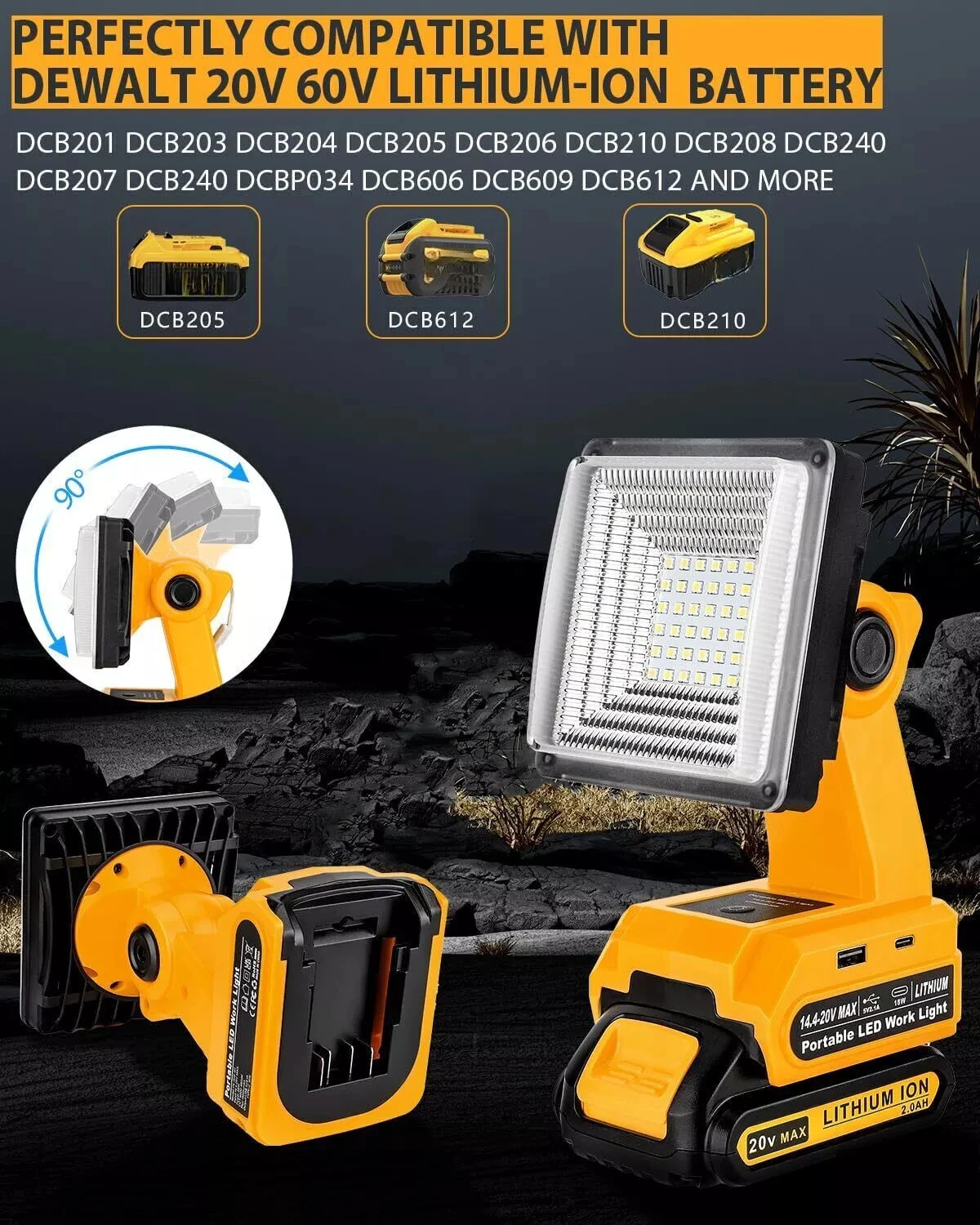 Como un banco de energía: equipado con un puerto USB de 5 V/2,1 A, su teléfono, mini ventilador USB y otros dispositivos electrónicos se pueden cargar con una luz de trabajo LED inalámbrica, como un adaptador de batería o un banco de energía.