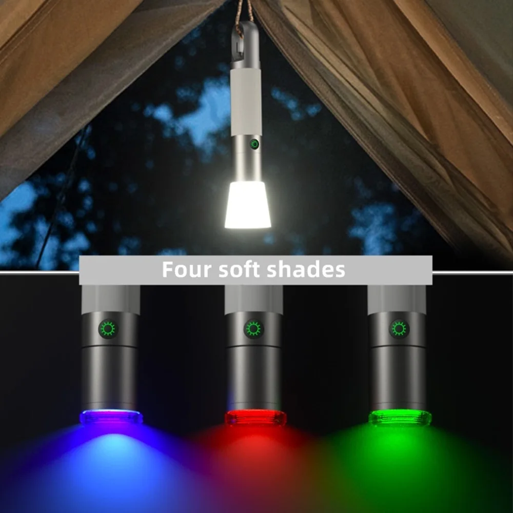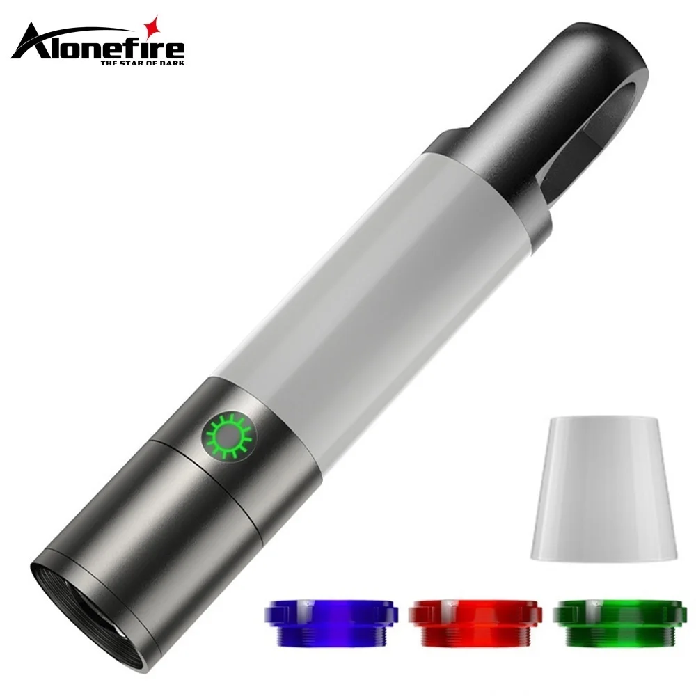 Linterna LED con haz de luz COB con Zoom, pantalla de lámpara roja, azul y verde, recargable por USB, multiusos, para exteriores, senderismo, Camping, pesca