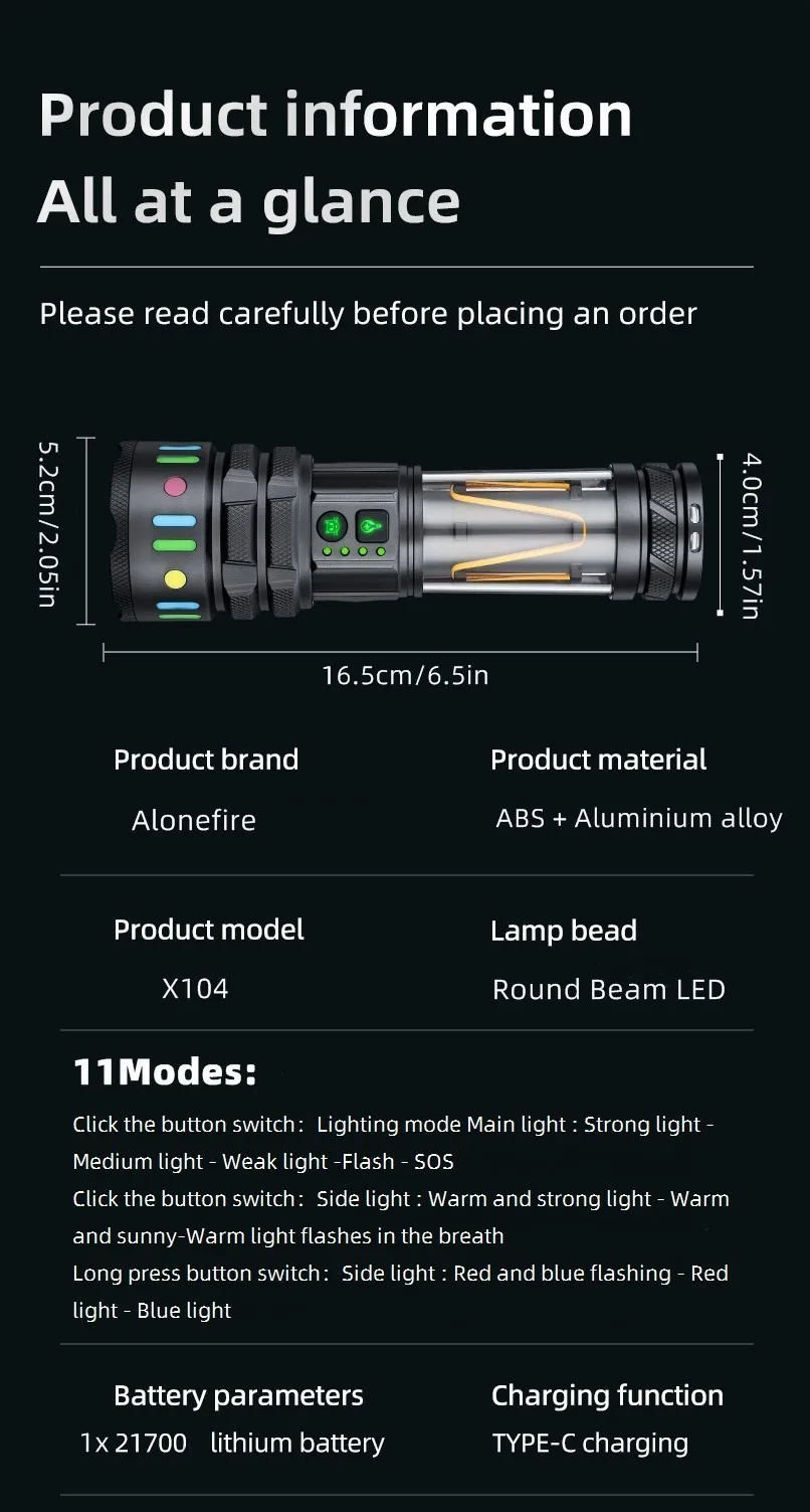 Tiempo de trabajo: aproximadamente 4-20 horas (el tiempo de trabajo de la lámpara puede variar debido a cambios en la capacidad o temperatura de la batería, ¡solo como referencia, no como base!)