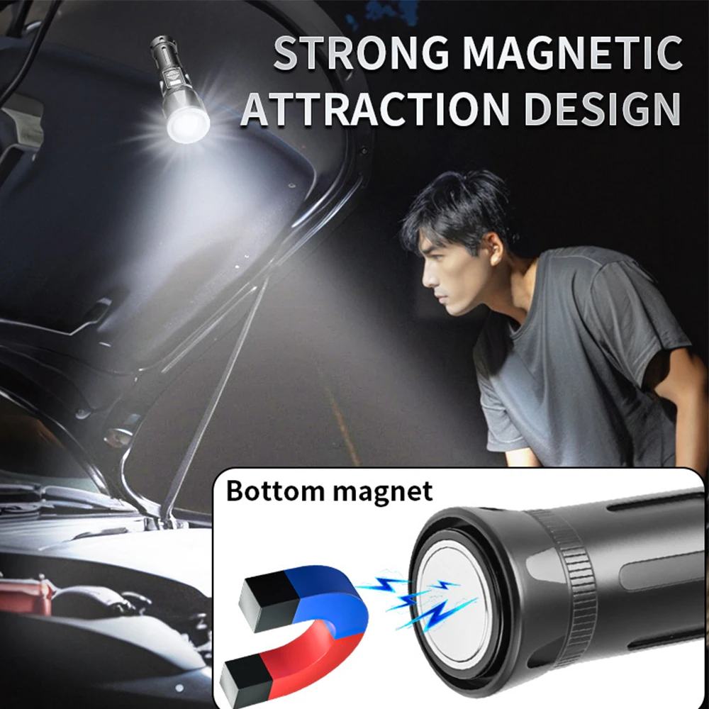 1.Equipado con un potente imán en la parte inferior, fácil de fijar a superficies metálicas como automóviles, bicicletas, cajas de herramientas, etc., liberando sus manos y mejorando la comodidad.