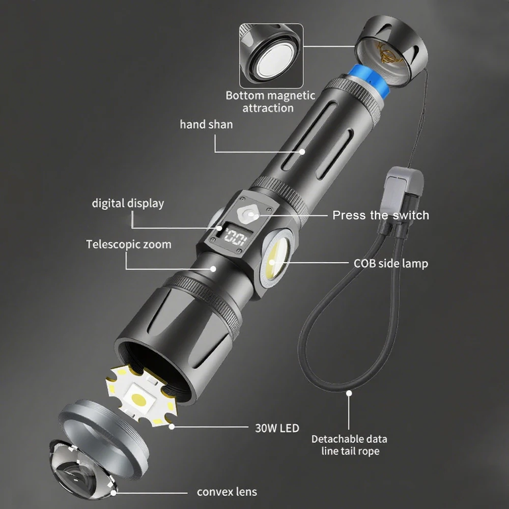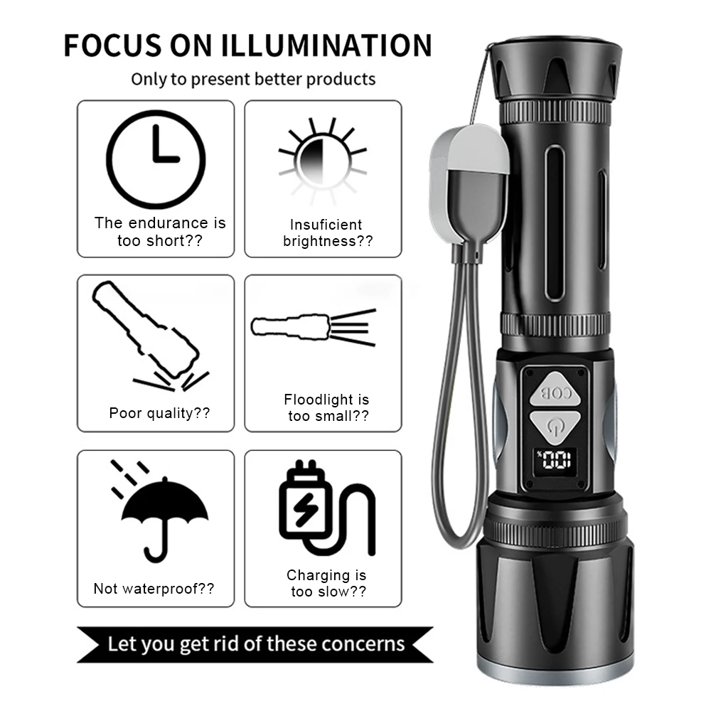 2.Adopta tecnología LED y COB de alto brillo para proporcionar iluminación de larga distancia y alta intensidad, adecuada para emergencias y actividades al aire libre.