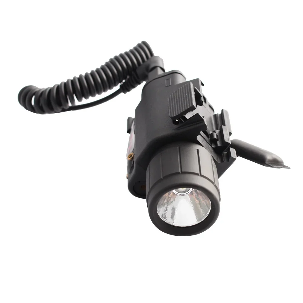 Características: Combinación de mira láser/LED linterna, Bombilla LED de larga duración 200 lúmenes Aumenta la precisión, ajusta la vista láser roja de 650nm para el viento y la elevación Úselos por separado o juntos Rendimiento seguro y óptimo Se adapta a rieles de estilo tejedor de 20mm con bloqueo de montaje de liberación rápida Utilice 2 baterías CR123A No incluido Especificaciones: Material: Cuerpo de plástico + Cabeza de Acero 3 modos: luz LED Luz láser roja Luz LED + luz láser roja Tipo de batería: 2x CR123A No incluido Potencia láser inferior a 5MW. Fuente de alimentación LED de 200 lúmenes. Riel tejedor integrado de 5/8 "o 20mm. Color: negro El paquete incluye 1 * Luz 1 * interruptor remoto 1 llave