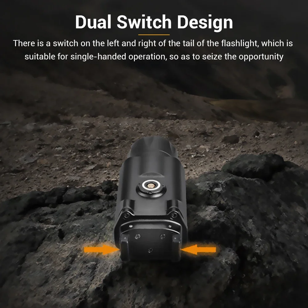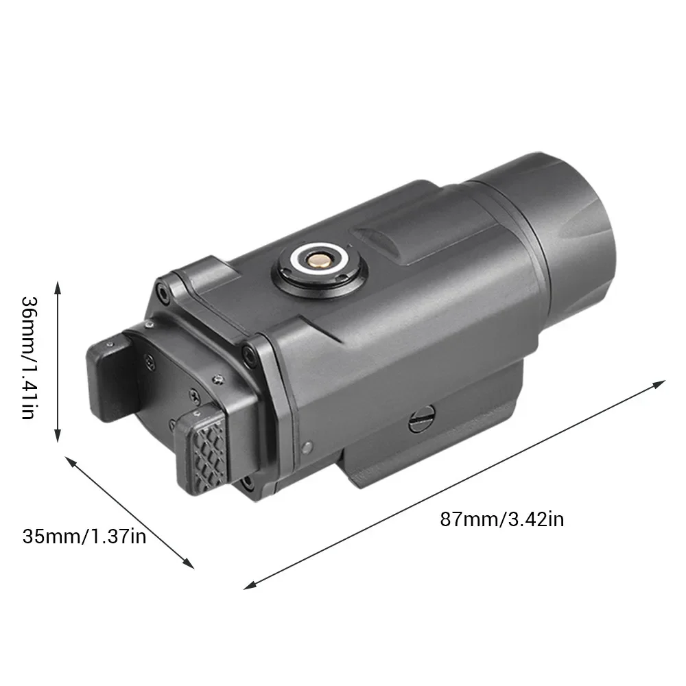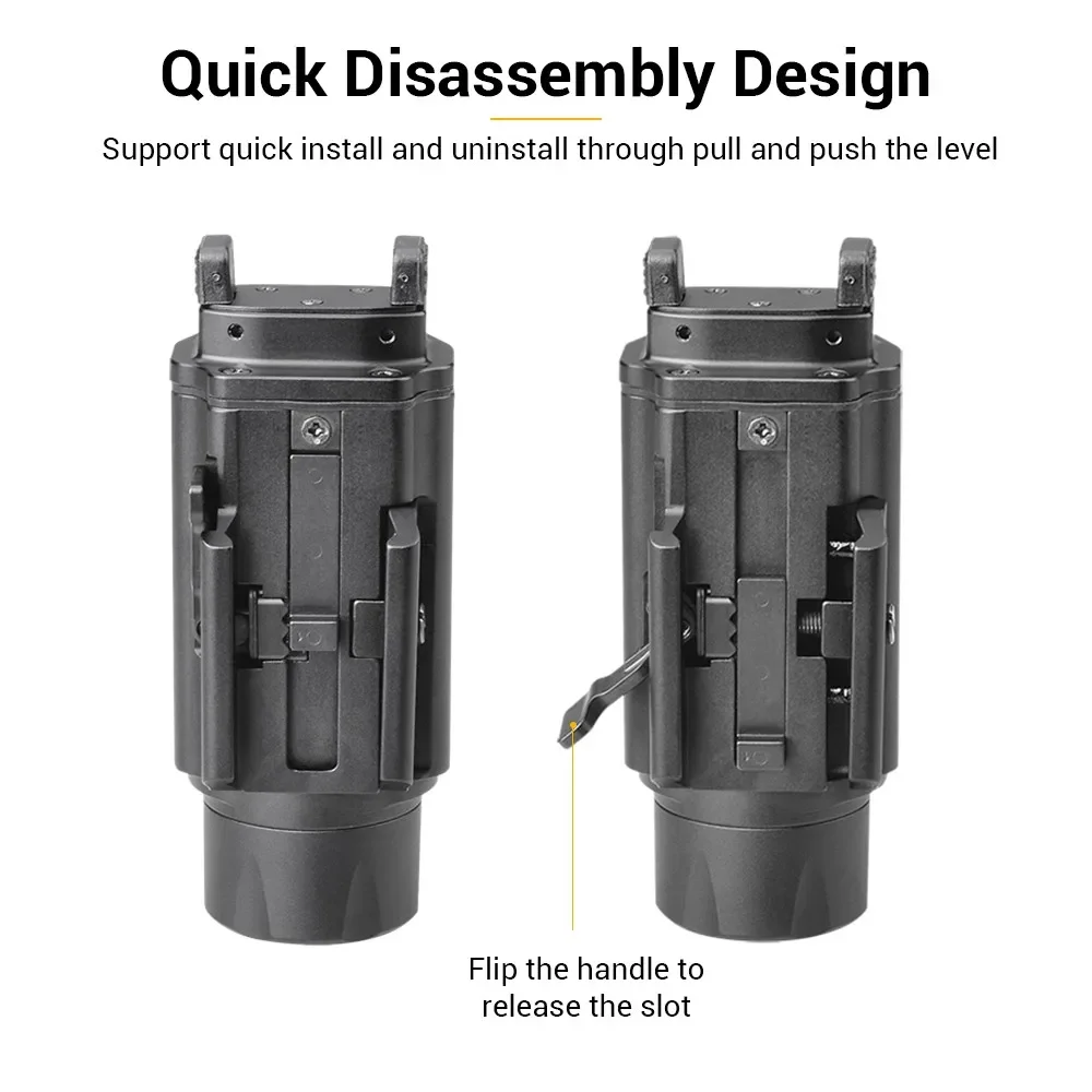【FUERTE Y ESTABLE】La luz led para armas está hecha de aluminio de aviación resistente, se ha sometido a un riguroso proceso de fabricación, ha pasado una prueba de caída de 1,0 m y es impermeable IP65. Cuenta con un diseño de interruptor de doble cara en la parte trasera para un fácil manejo con cualquier mano.
