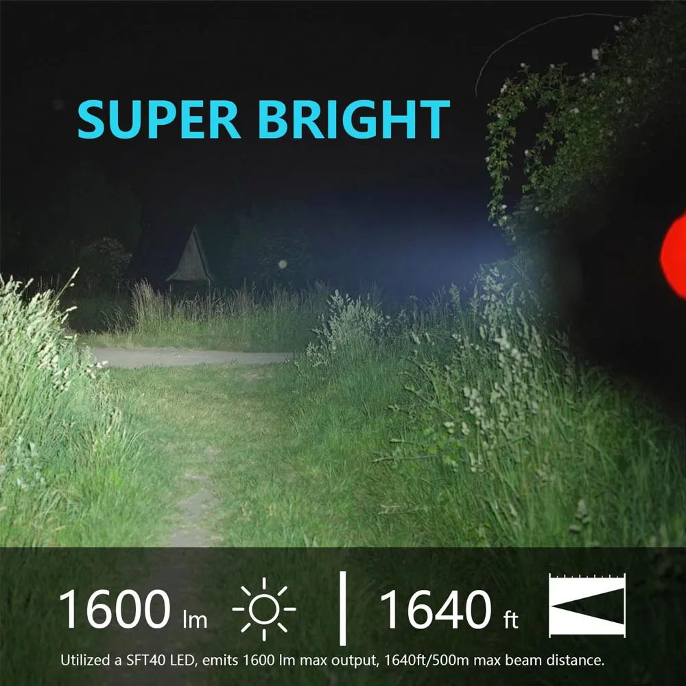 Linterna LED recargable de 1600 lúmenes, dispositivo de bolsillo brillante con perno giratorio suave, diseño de liberación de empuje