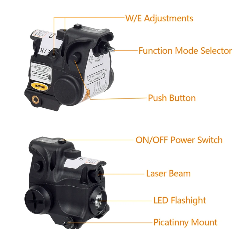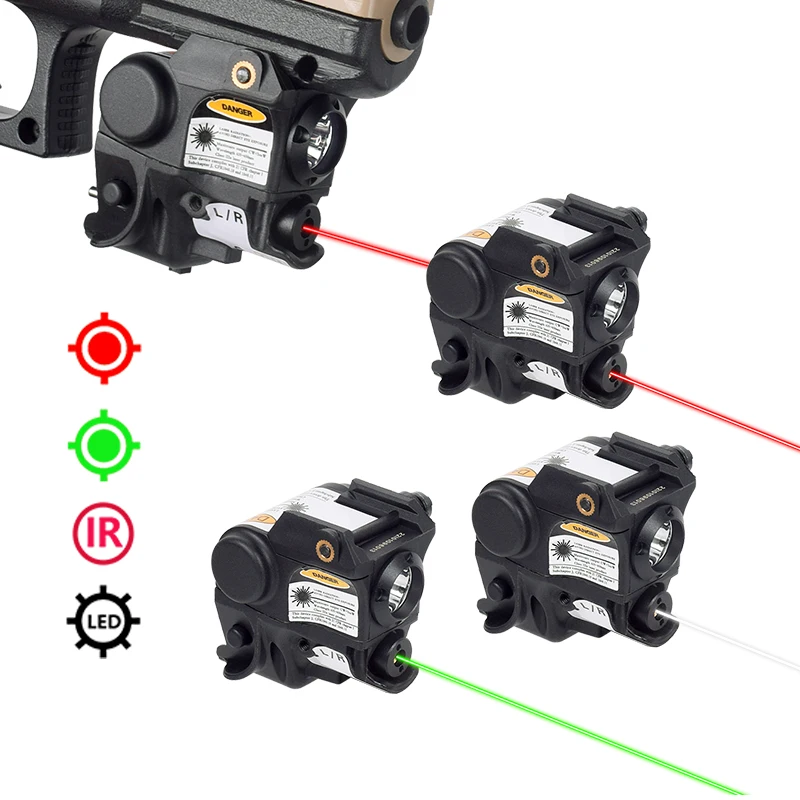 Linterna LED táctica, mira láser verde/roja para mini Glock 17 19, pistola, arma de luz, luz de explorador para riel Pictinny de 20mm