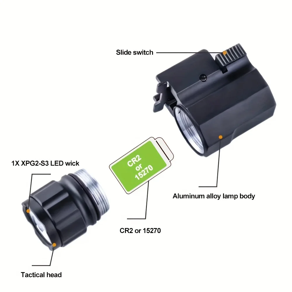 Linterna LED táctica portátil pequeña para exteriores, linterna LED montada en la parte inferior, adecuada para riel de guía de 20mm, Camping y caza, X100