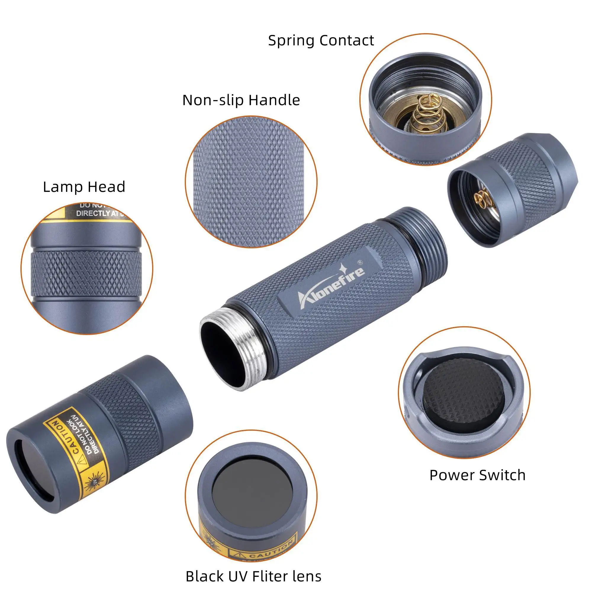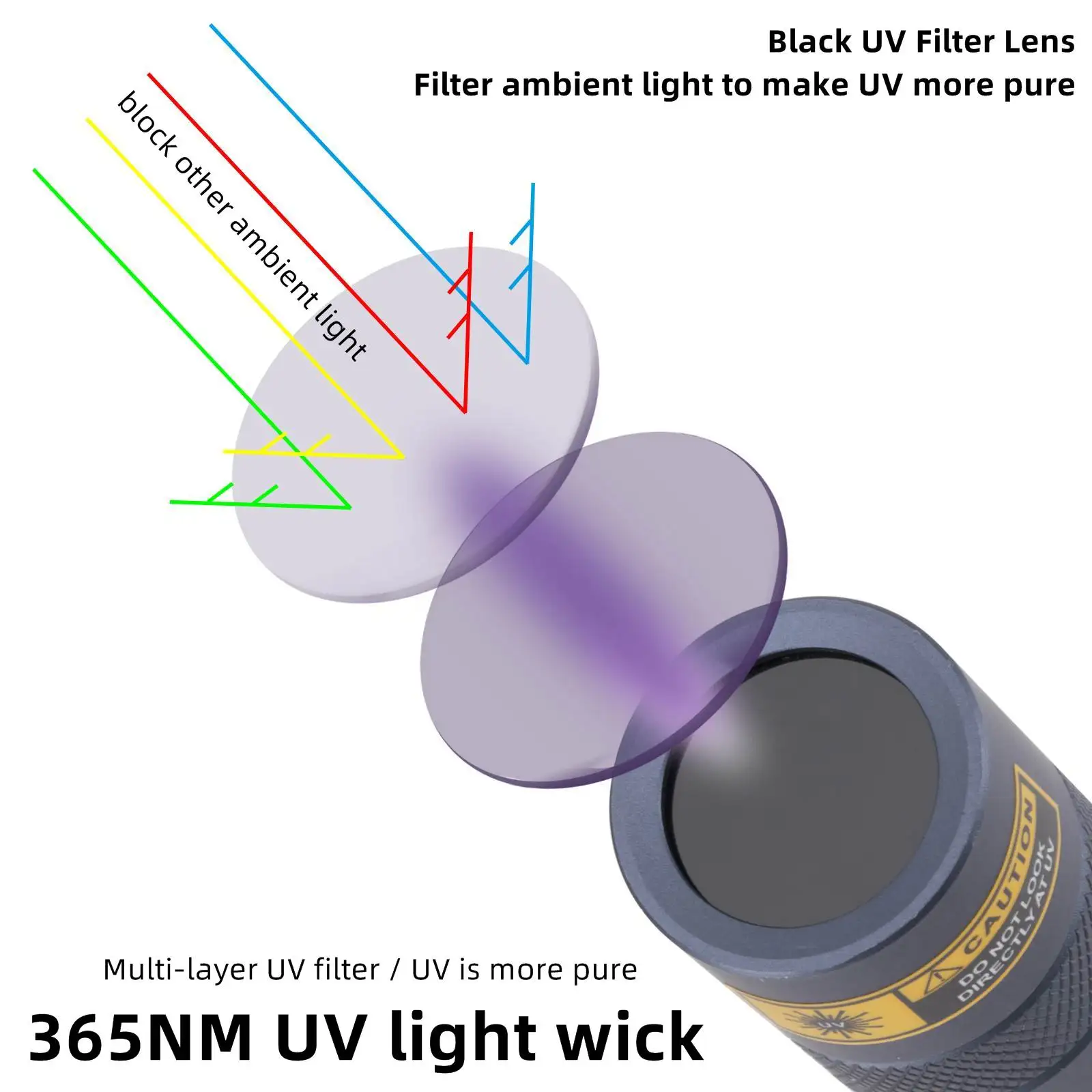 La linterna ultravioleta se puede utilizar como mascota (perro/gato) detector de orina/buscador de escorpión/fluorescente/detector/moneda/licencia/tarjeta/Autenticación de pasaporte/manchas de aceite/detector de fugas/Mineral/identificación antigua/curado de pegamento UV/ECT. (En el ambiente oscuro, ¡el efecto de detección de luz púrpura UV es mejor!)