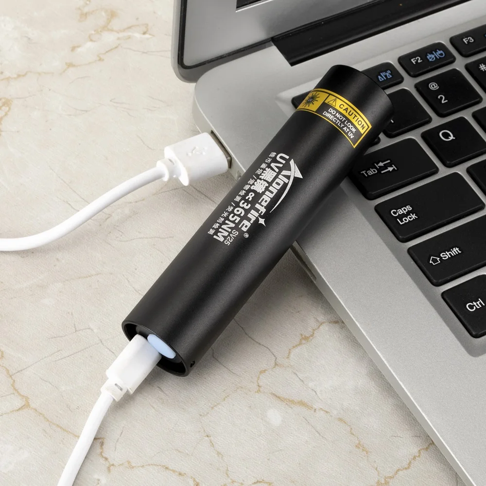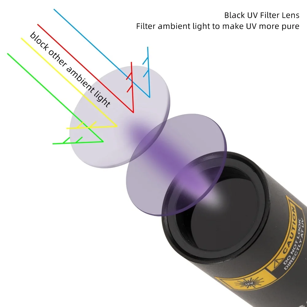 La linterna ultravioleta se puede utilizar como detector de orina para mascotas (perros/gatos)/buscador de escorpiones/fluorescente/detector/moneda/licenza/tarjeta/autenticación de pasaporte/manchas de aceite/detector de fugas/oro/identificación antigua/curado con pegamento UV/etc.(En un ambiente oscuro, ¡el efecto de detección de luz violeta UV es mejor!) Lista de embalaje:
