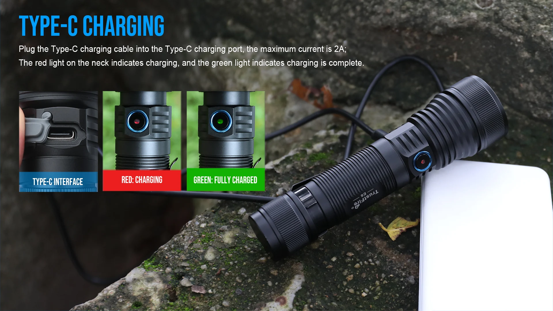 Conecte el cable de carga tipo C al puerto de carga, la corriente máxima es 2A; La luz roja en el cuello indica carga.Y la luz verde indica que la carga está completa.