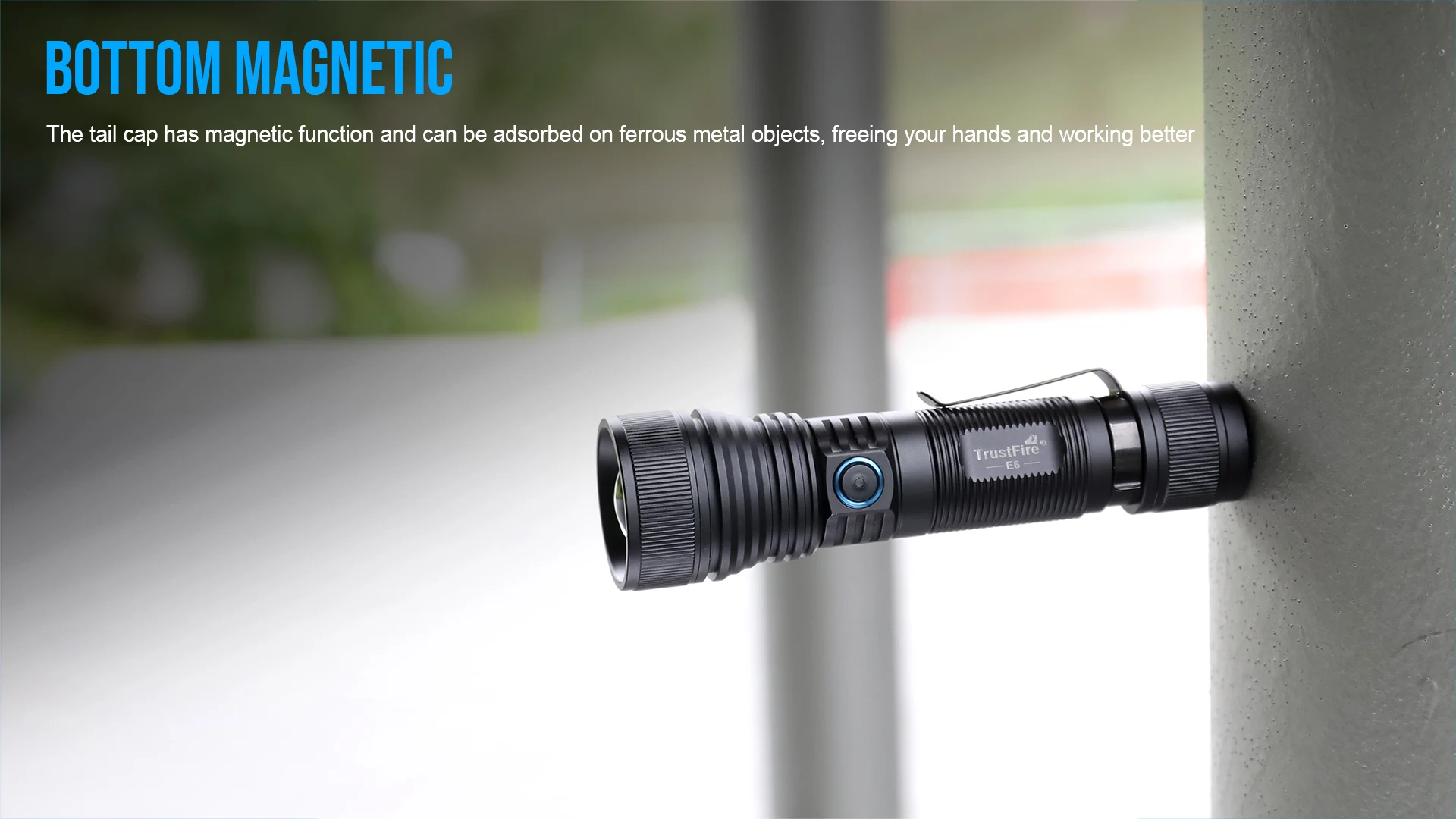 Linterna LED con zoom Trustfire E6, 1500 lúmenes, 550M, antorcha recargable de largo alcance, luz portátil con función de banco de energía, imán