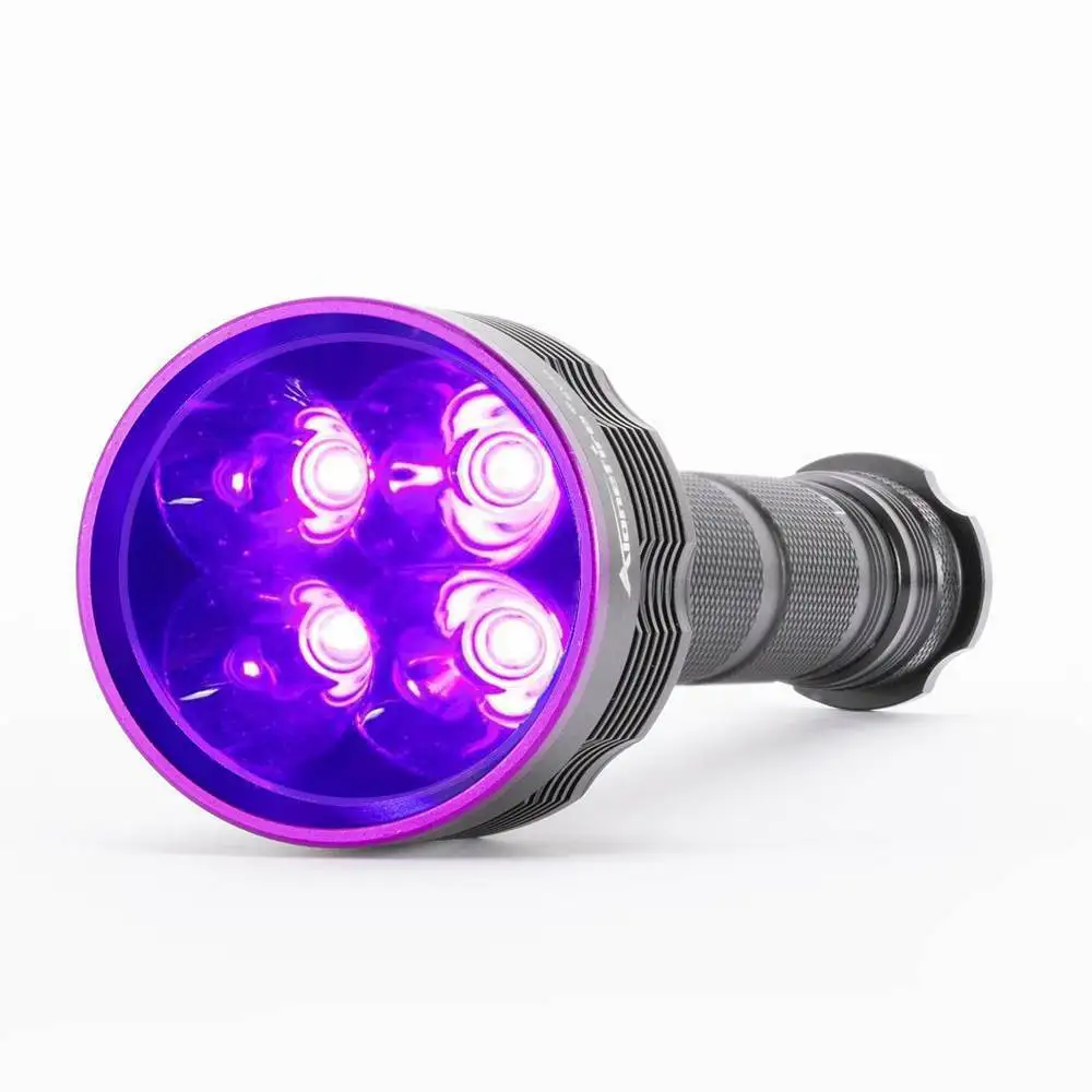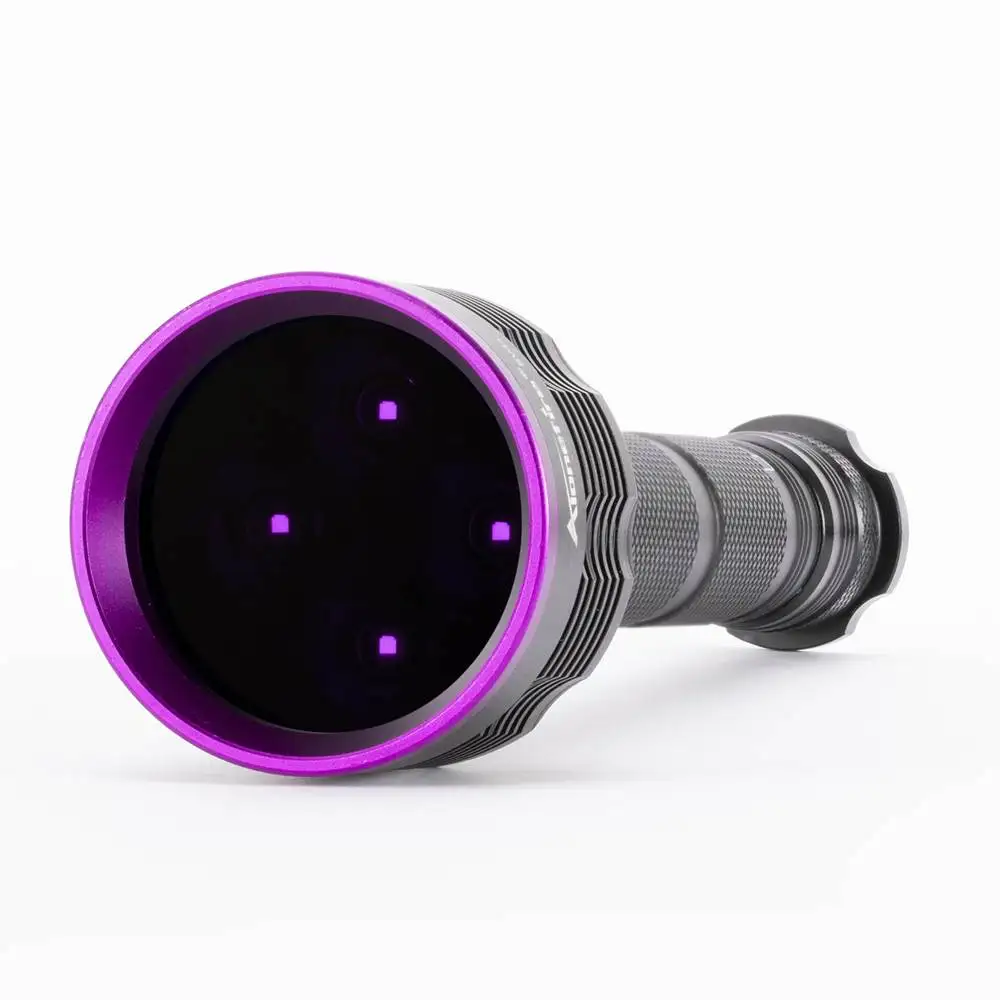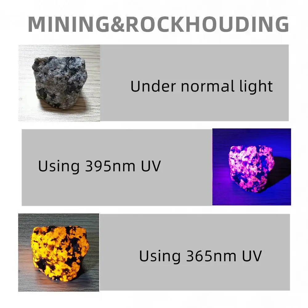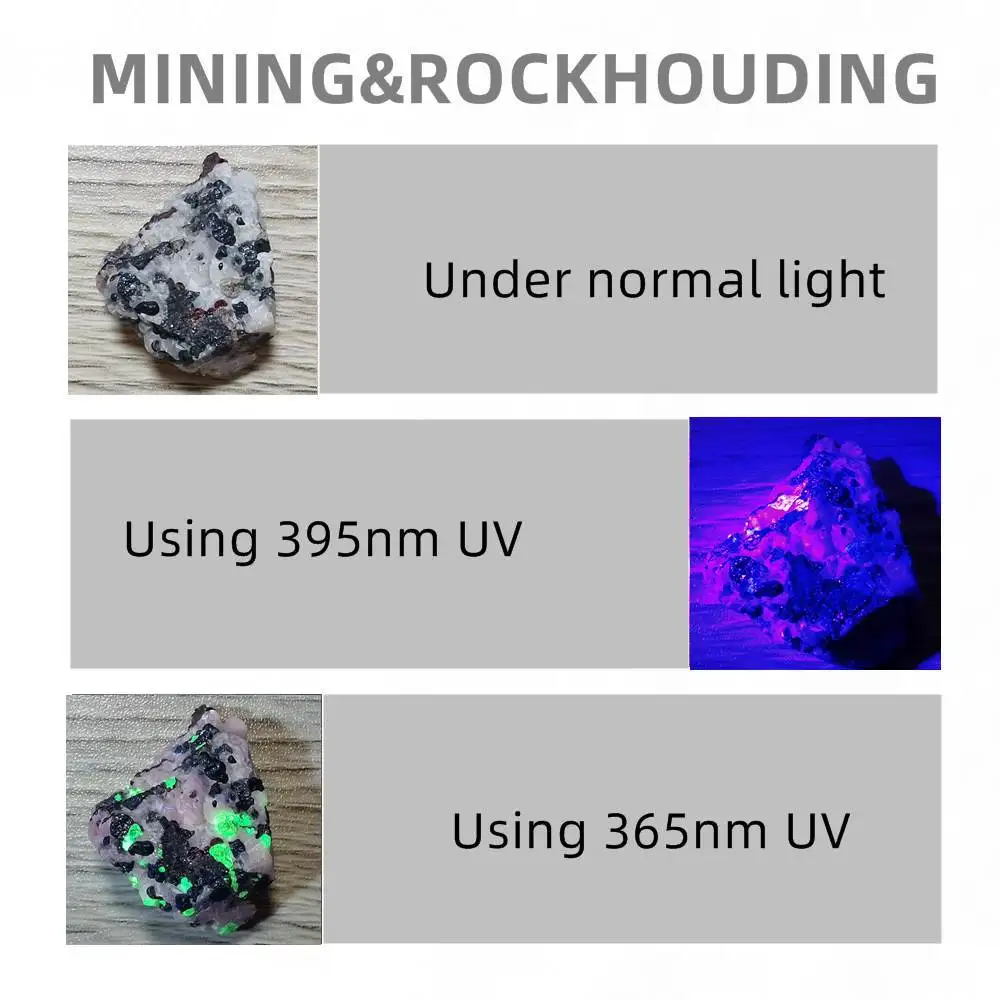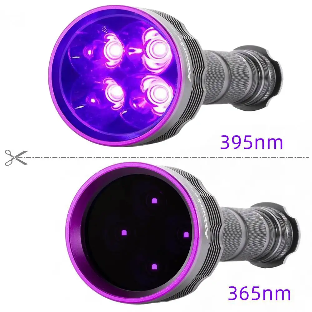 La luz ultravioleta de 365 nm es invisible a simple vista, por lo que no es tan BRILLANTE como la linterna de 395 nm, sino más perfecta para detectar una alta demanda como agentes fluorescentes y códigos de seguridad.UV de 365 nm es el espectro de detección realmente dedicado.Se puede utilizar con luz natural y funciona mejor en la oscuridad con poca fuga de luz visible.