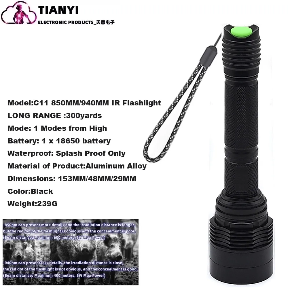 Linterna de luz de relleno con zoom LED, dispositivo de visión nocturna infrarroja IR de 5W, 850/940nm, linterna para exteriores C11