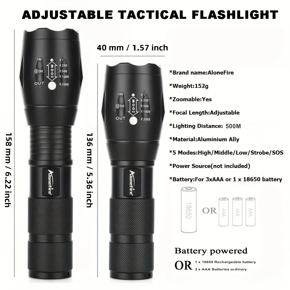 Tipo de batería: 1*18650 pilas/3 * AAA(no incluidas)