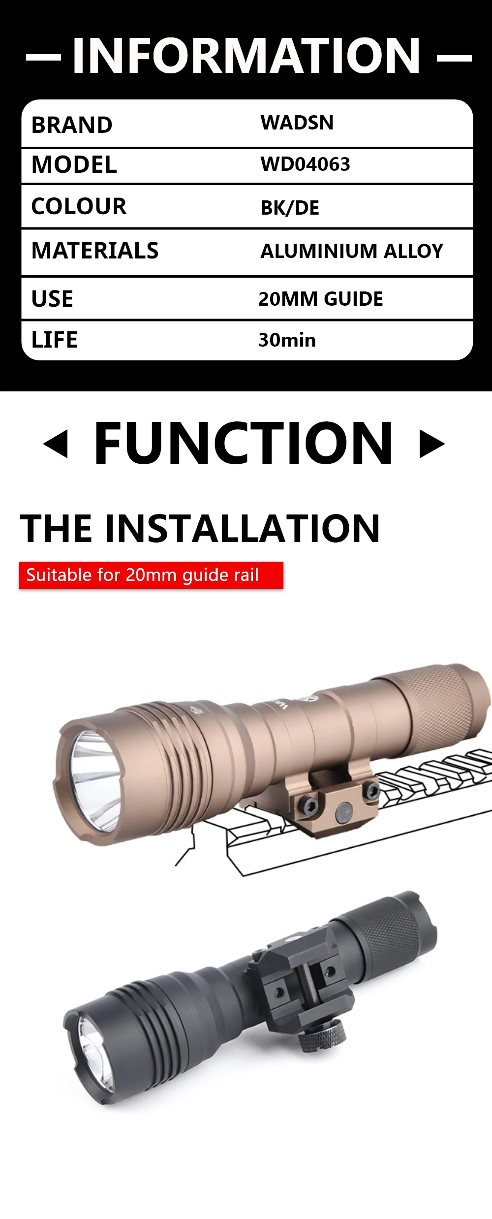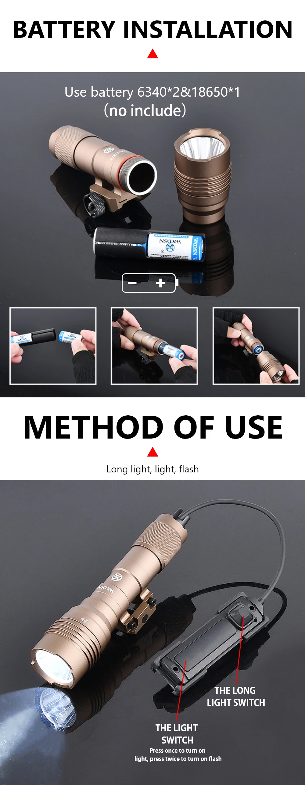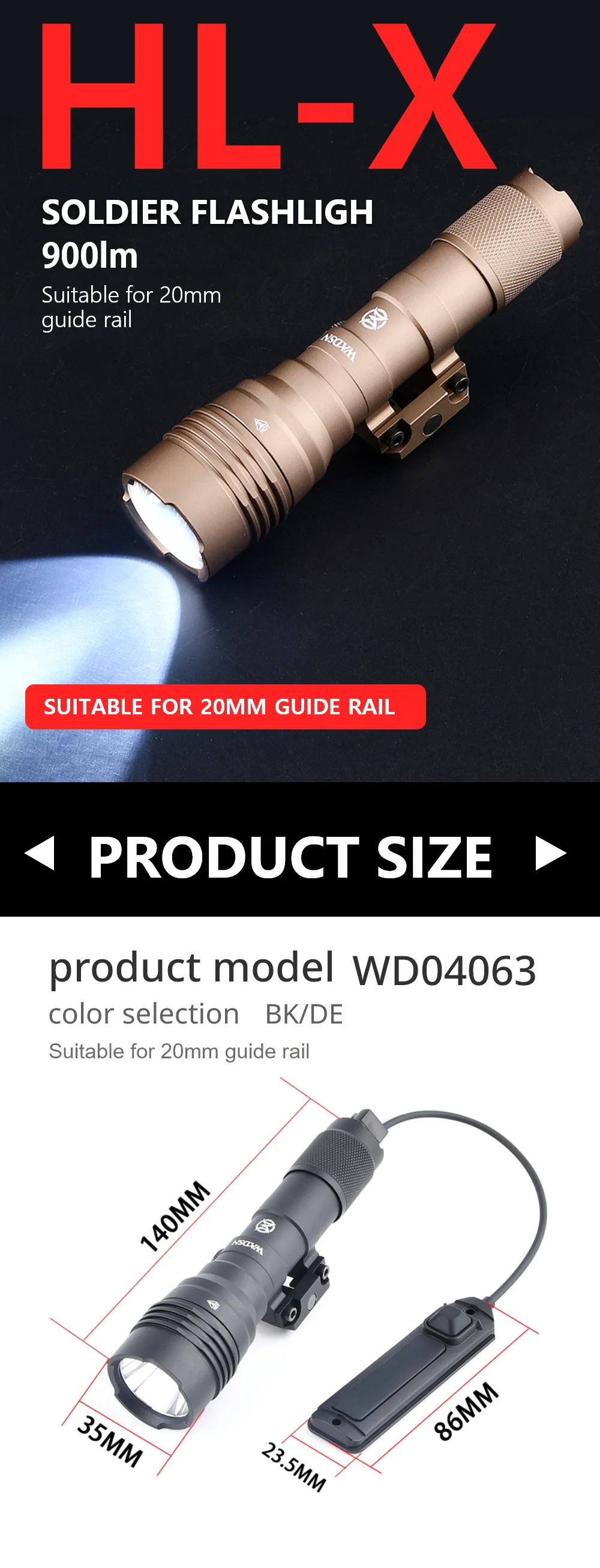 Linterna de Metal HL-X WADSN, luz de exploración de 900 lúmenes, luz estroboscópica LED blanca, luz estroboscópica de alta potencia, partes de armas de caza ajustadas a 20MM