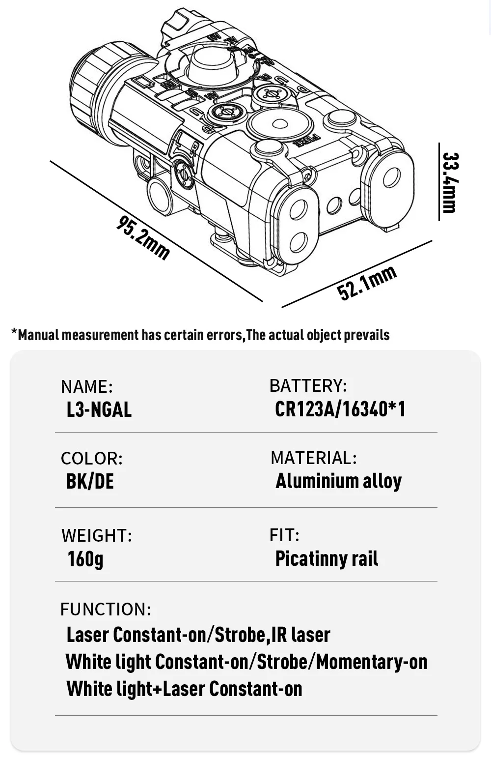 Linterna de metal NGAL NGAL-L3 OGL X300V PEQ LA5C DBAL-A2 X35 M300 M600
