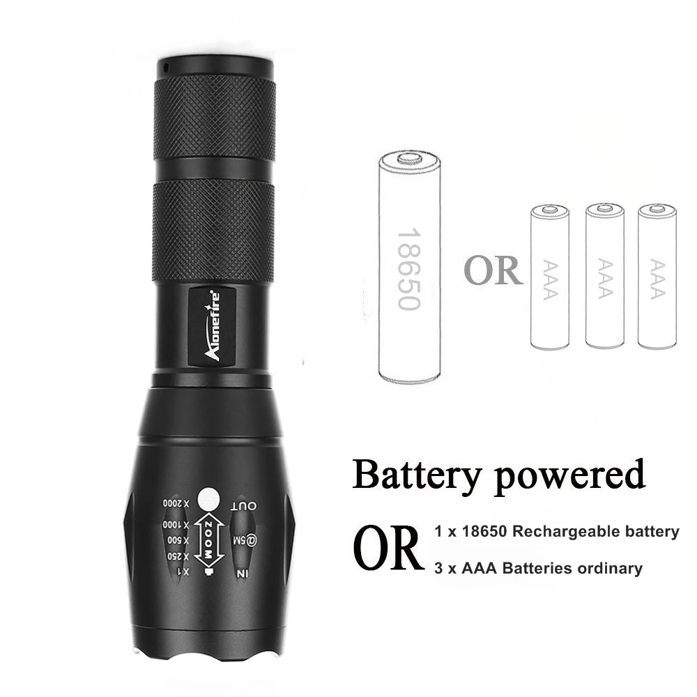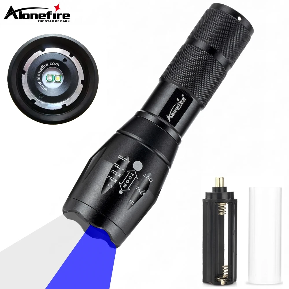 Especificaciones: Nombre de la marca: ALONEFIRE Modelo: E17 Tipo de emisor: LED de luz azul Cantidad de bombillas: 1 Color DE LA LUZ: Color rojo Vida útil del LED: 100.000 horas Modo: 1 modo Luz blanca Distancia máxima de iluminación: 100-200m Configuración de la batería: para 1 Batería 18650 o 3 pilas AAA Voltaje de entrada: 3,7-4,2 V Ubicación del interruptor: tapa trasera Lente: lente convexa Características especiales: Zoomable Material: aleación de aluminio Dimensiones: 136mm/5,36 pulgadas x 27mm/1,06 pulgadas x 40mm/1,57 pulgadas Peso: 150g/0,33 LB Características del producto Zoom Blue Light linterna luz de iluminación Aplicar a: Hogar, mochilero, caza, emergencias automáticas, Pesca, montañismo, camping, búsqueda y rescate.