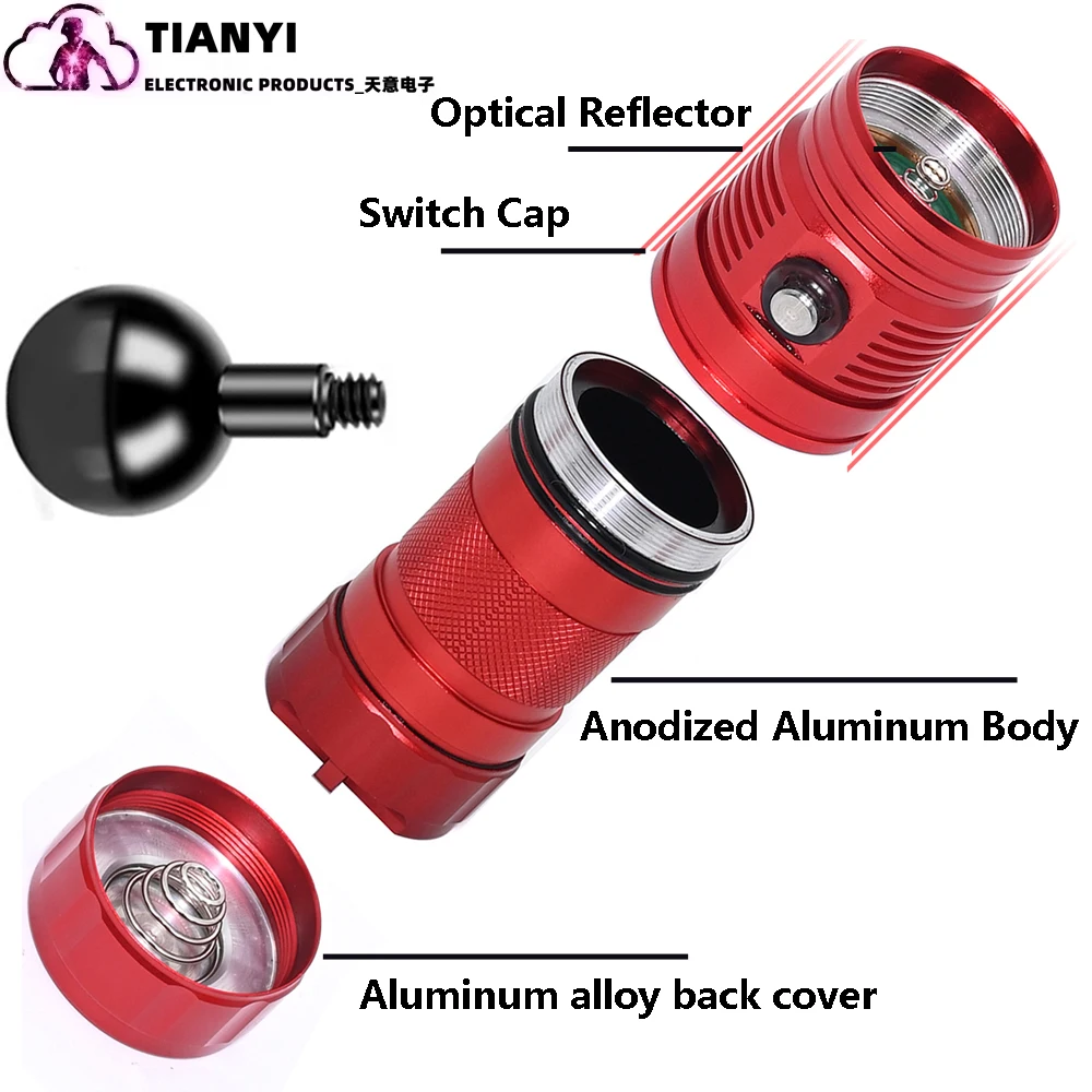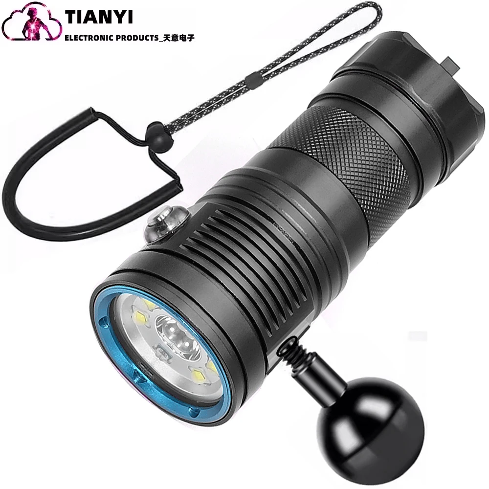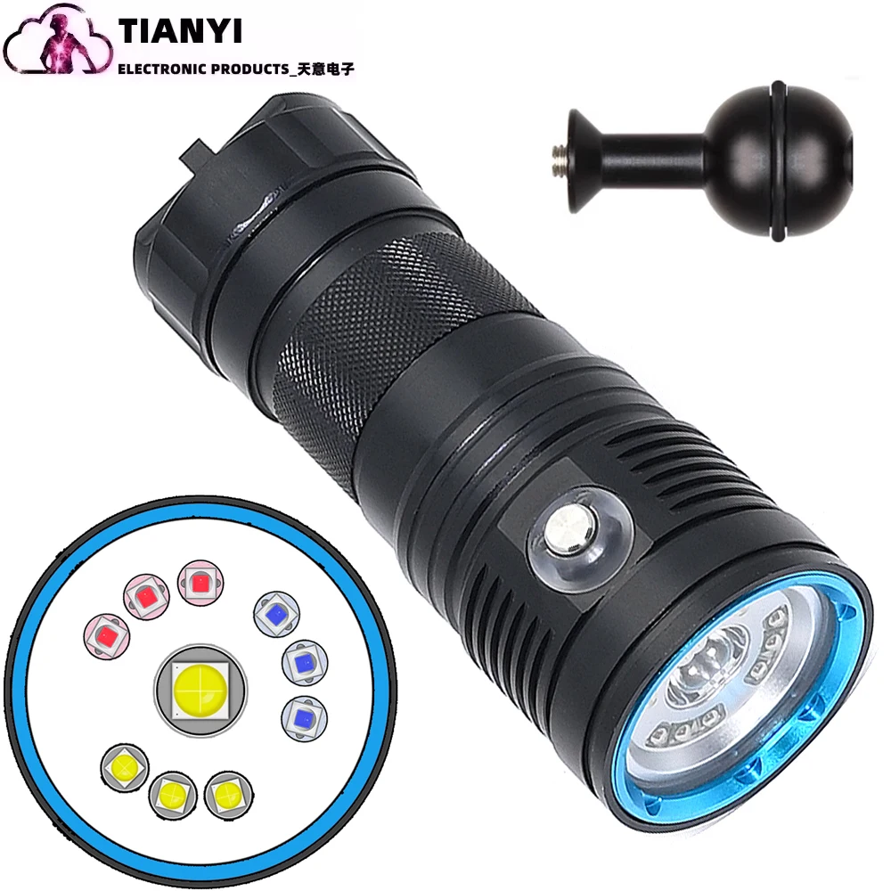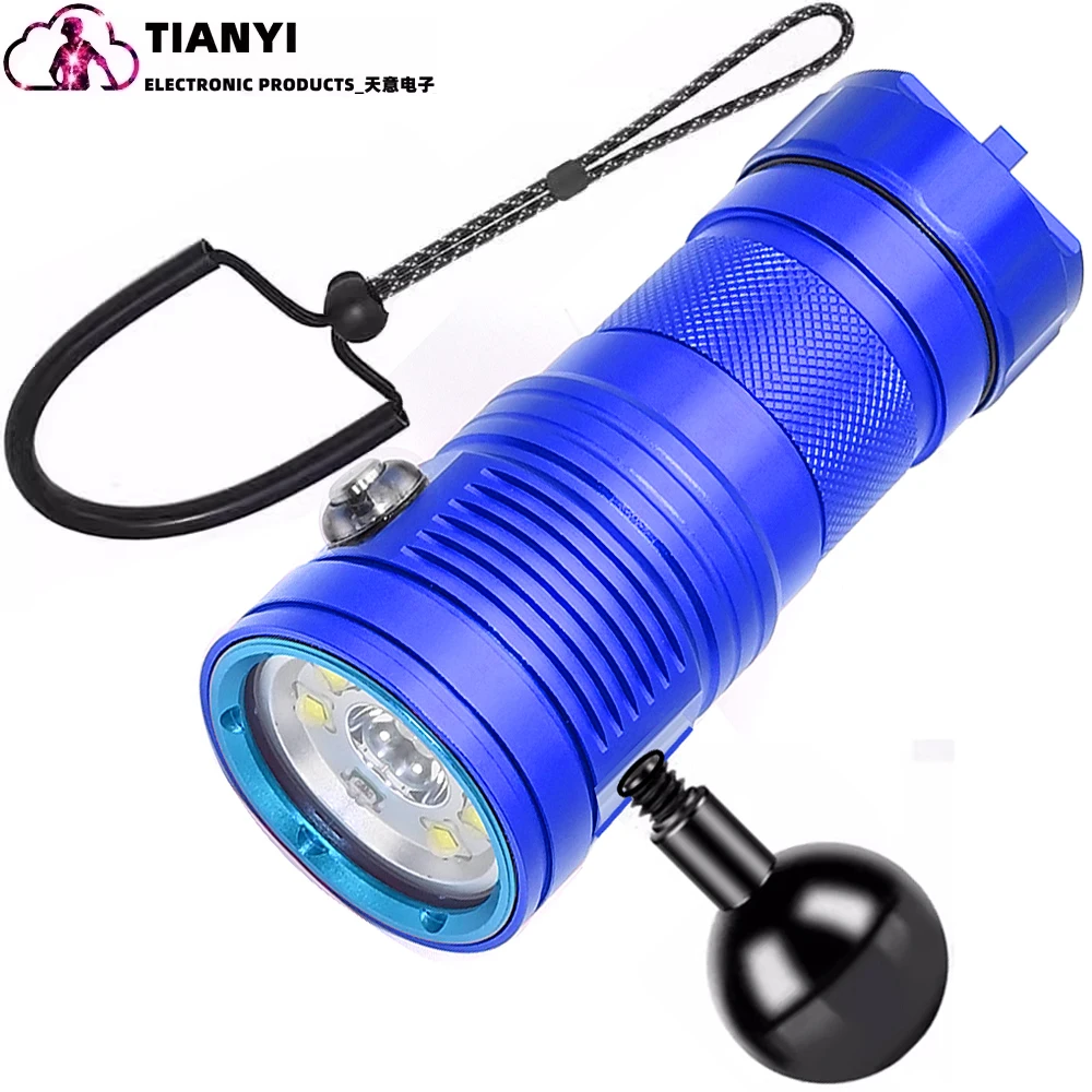 Linterna LED de buceo con vídeo subacuático, linterna táctica subacuática de 80M L2 UV para fotografía, linterna impermeable para el XM-L2