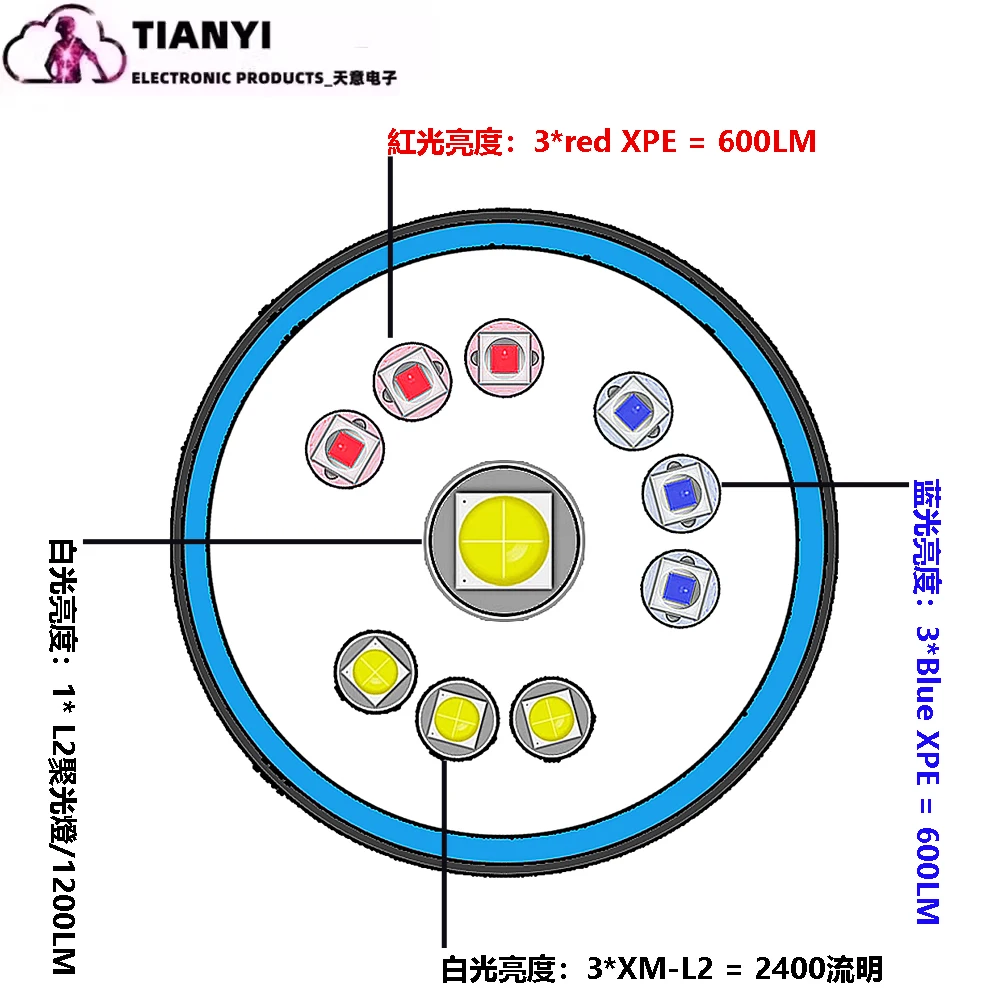3 * luz blanca LED-1 * luz blanca LED-Luz Azul-luz roja