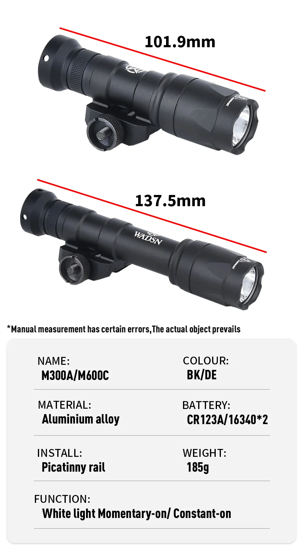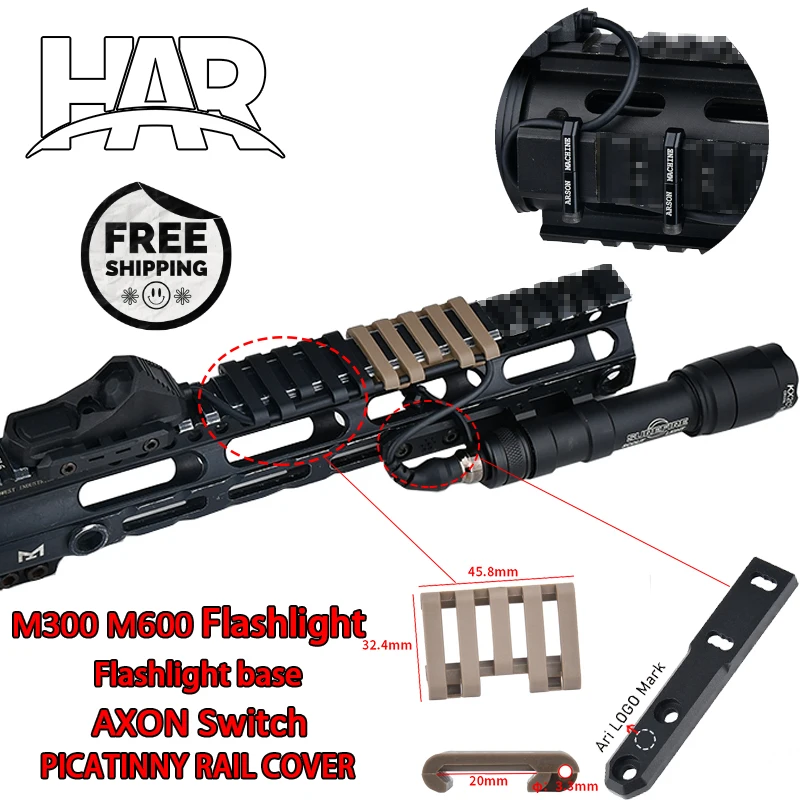Linterna Surefir M300 M600 con interruptor de presión remoto de doble función AXON con Base de linterna con riel de 20MM de cuero de 5 ranuras