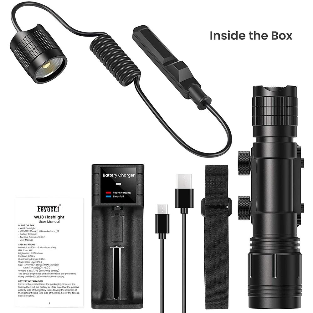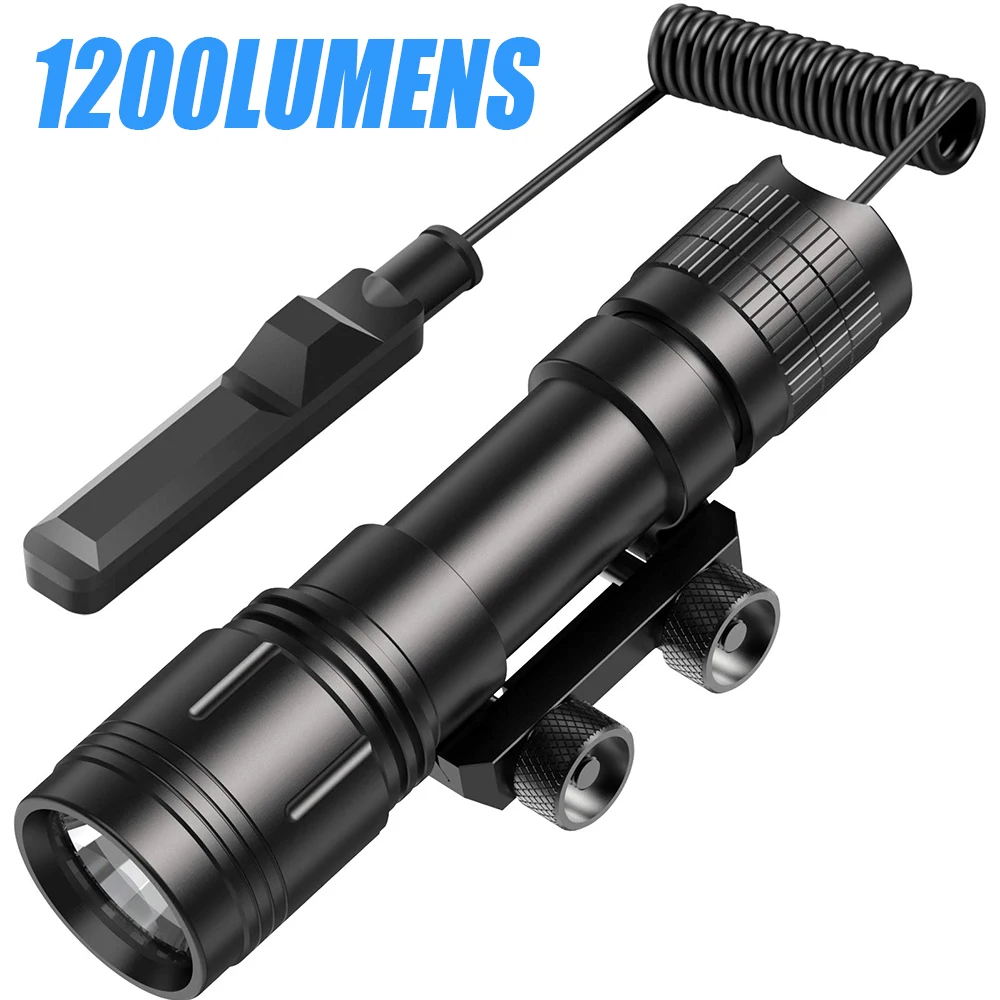 Linterna táctica de 1200 lúmenes, pistola de luz recargable con interruptor de presión para montaje en riel MLok, batería 18650