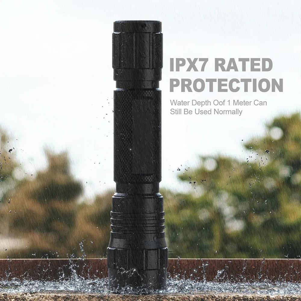 La linterna para rifle aún se puede utilizar normalmente en un ambiente con una profundidad de agua de 1 m, el material de aleación de aluminio de grado aeronáutico garantiza la estabilidad a -20°C-40°Temperatura C, la superficie está anodizada para ser más resistente al desgaste y resistente, y es un socio confiable en cualquier entorno.