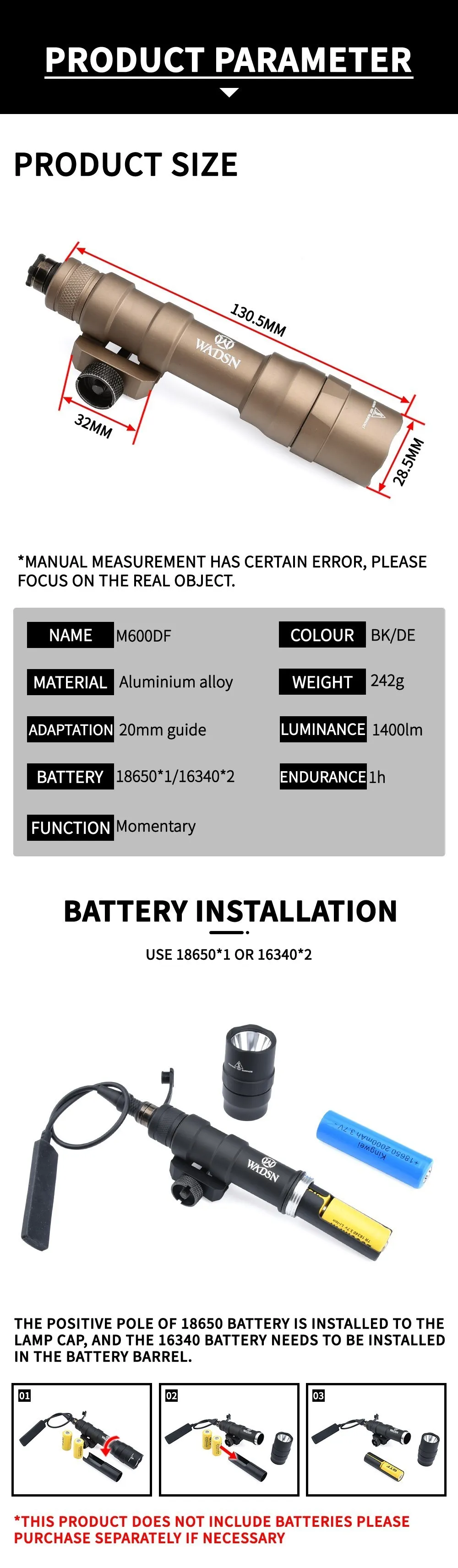 Linterna táctica Airsoft M600 M600DF, Luz LED de alta potencia de 1400 lúmenes con Base de compensación, accesorio de caza para riel de 20MM