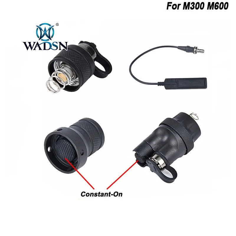 Linterna táctica Airsoft, tapa trasera de Metal, interruptor de presión de doble función, cubierta para Surefir M300 M600, luz de caza