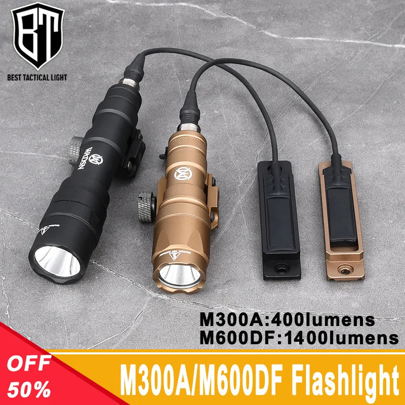 Linterna táctica de alta potencia, luz blanca, interruptor trasero de Metal, ranura para tarjeta, compatible con riel m-lok Keymod, M600, M300, M600DF, M300A, 1400 lúmenes