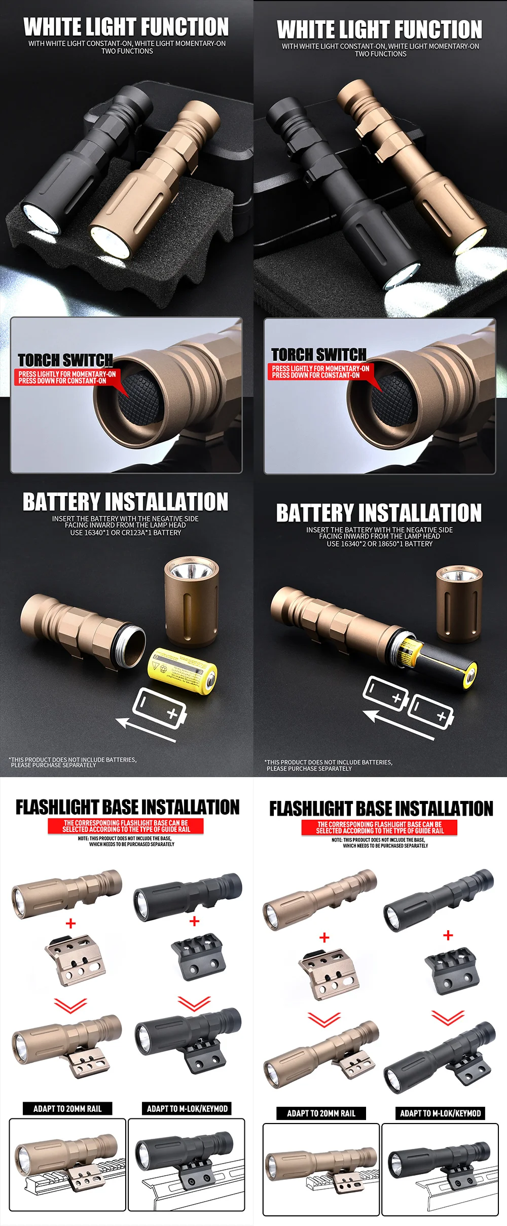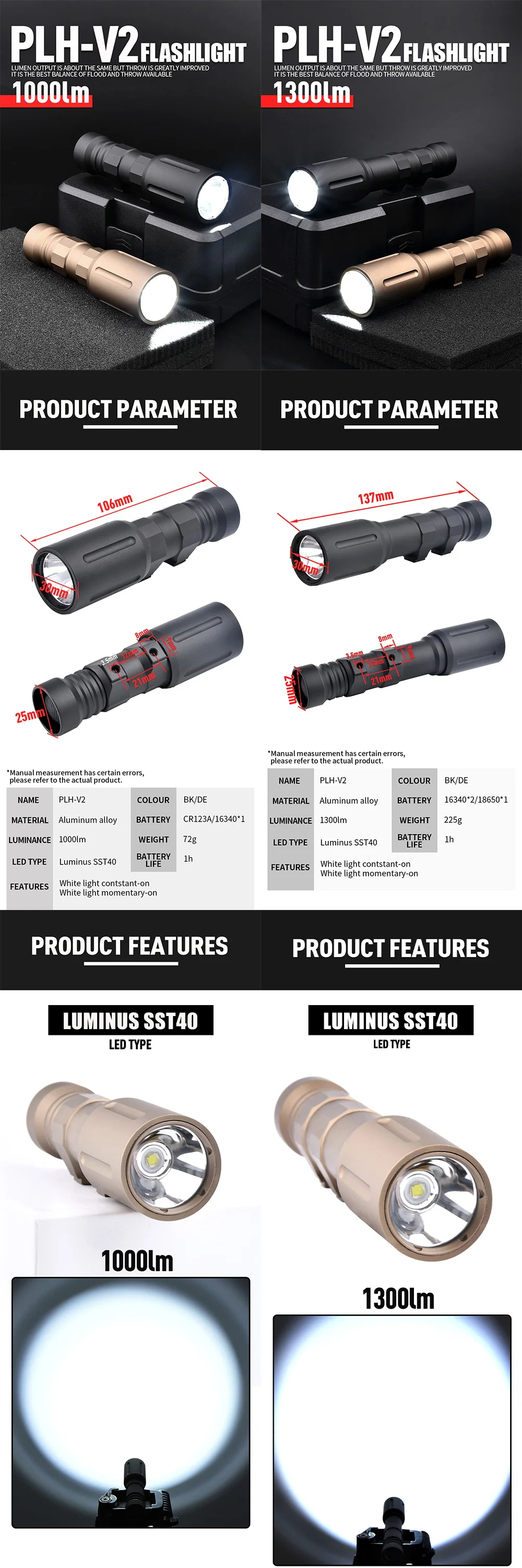 Linterna táctica de alta potencia para PLH-V2, foco de arma de 1300 lúmenes, compatible con carril de 20MM, AR15, Airsoft