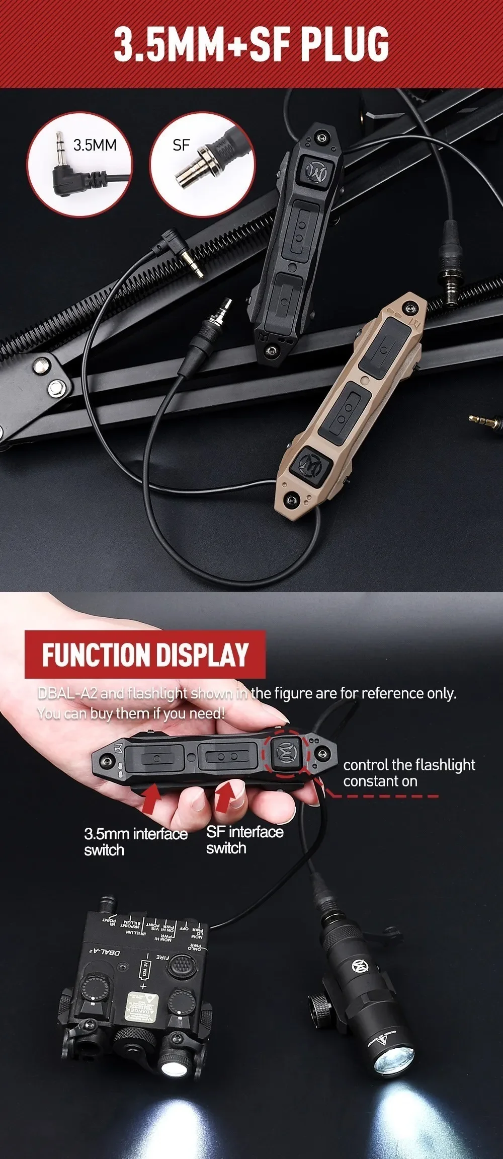 Linterna táctica DBAL-A2 Airsoft M300A M600C, accesorio de caza con interruptor de Control Dual