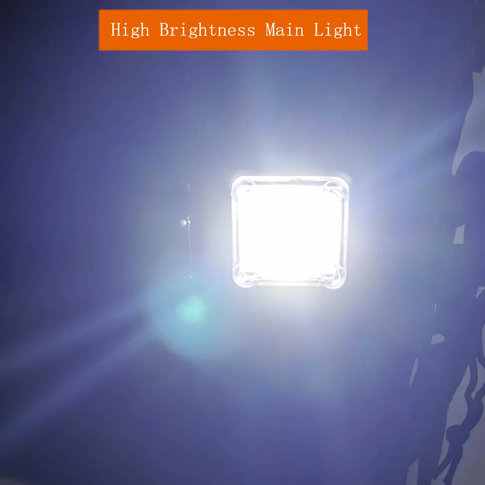2 modos de luz: 1 luz blanca fuerte / 2 luces blancas medianas / 3 luces blancas de inundación fuerte / 4 luces blancas medianas de inundación fuerte / 5 luces amarillas / 6 luces rojas / 7 luces verdes / 8 luces azules / Amarillo Rojo Verde Modo de luz de sintonización azul/ Rojo azul intermitente/Modo de ráfaga amarillo rojo verde azul