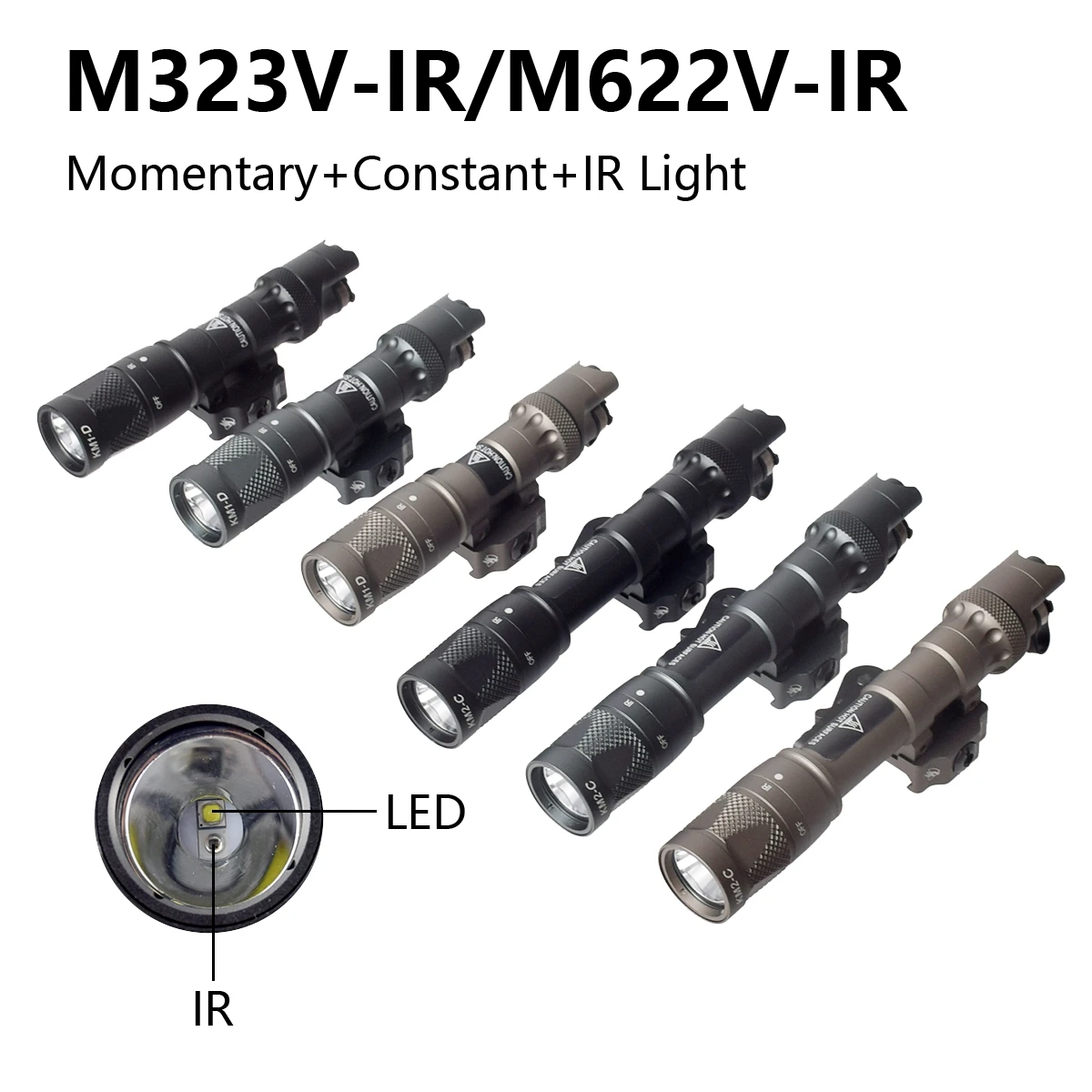 Linterna táctica IR M323V M622V, luz LED de 500 lúmenes y salida infrarroja IR, luz de explorador de caza con interruptor remoto y montaje QD