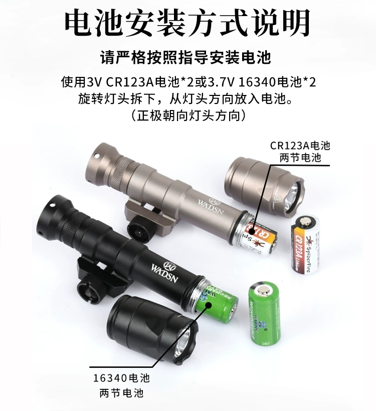 Alimentado por una batería 2x CR123A (¡la batería se carga desde la tapa de la lámpara!)