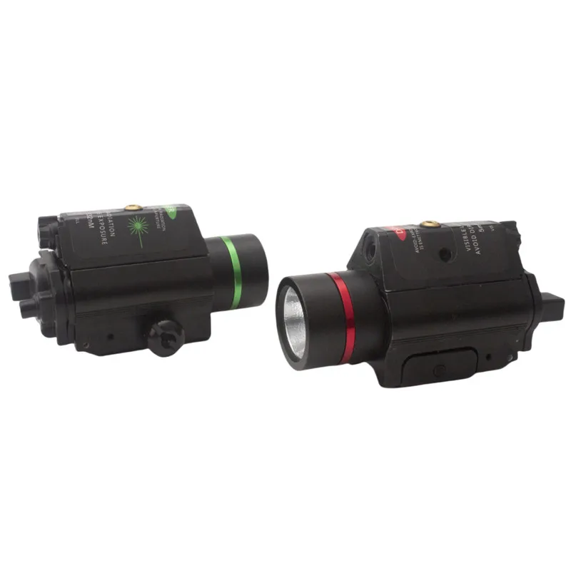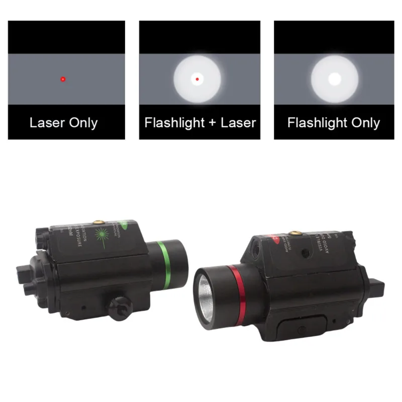 Linterna táctica LED con mira láser roja y verde para caza, Combo de tres engranajes ajustables para riel Picatinny de 20mm