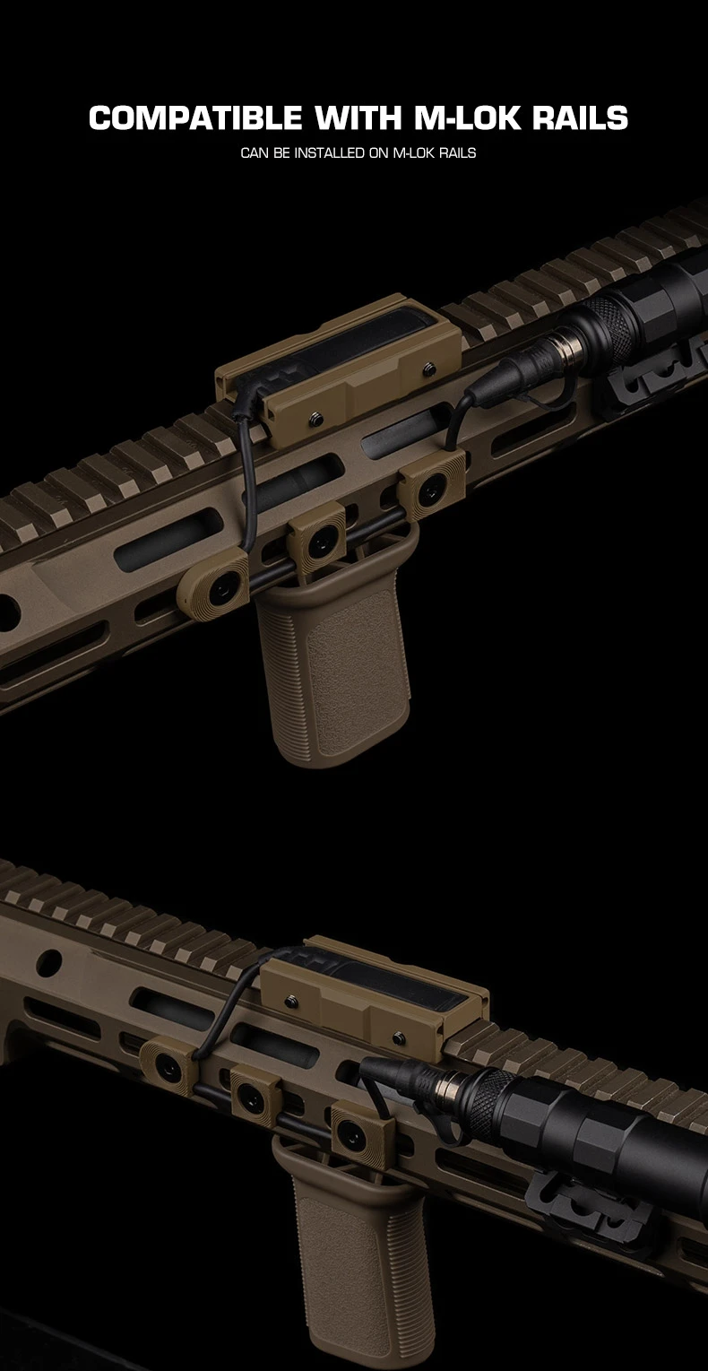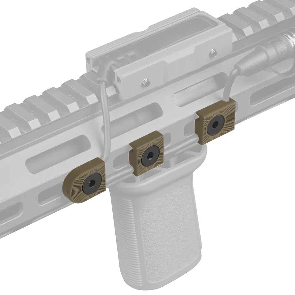 Our wire guidance system is modular, just like our light installation, and is also very easy to use, giving you many possibilities to clean your hand guards. You can use any number of clips. When combined, any two parts can sit in the 1 M-LOK slot if necessary. You can also place a single clamp anywhere in the slot, thus giving your setup the greatest flexibility. All three guide rails are made of domestic 6061-T651 aluminum, which is made of Type III hard anodized black to achieve maximum lifespan and durability. We also added some subtle grip rings on the top surface of each part to help with grip and help reduce visual signatures.