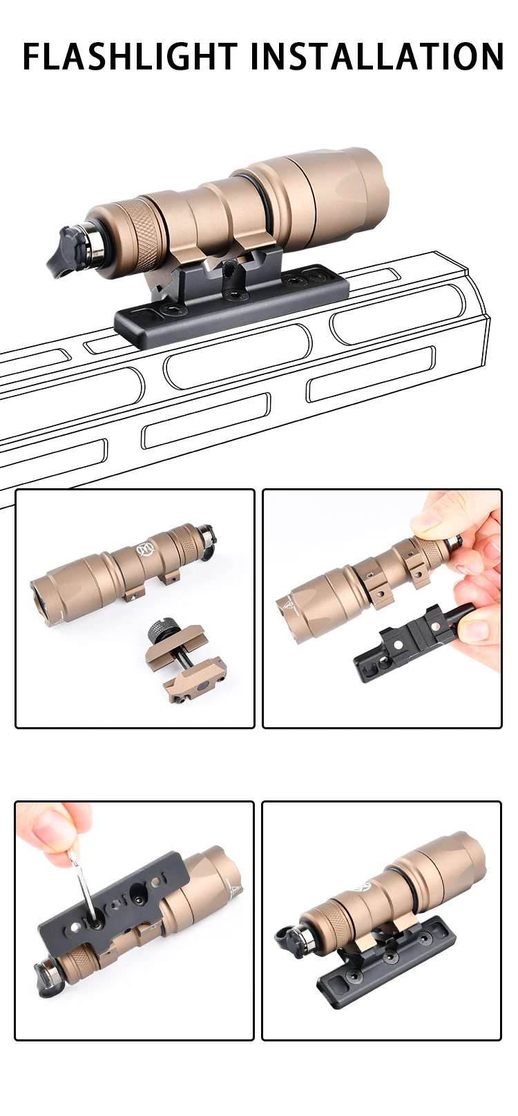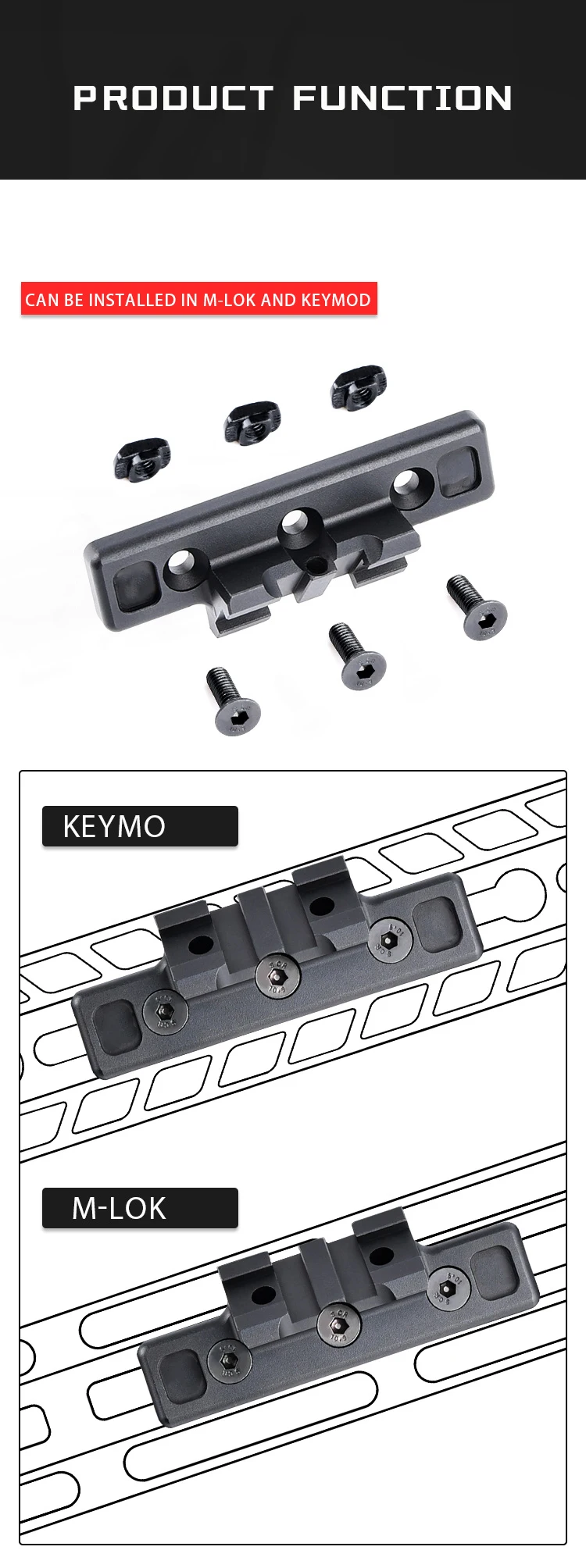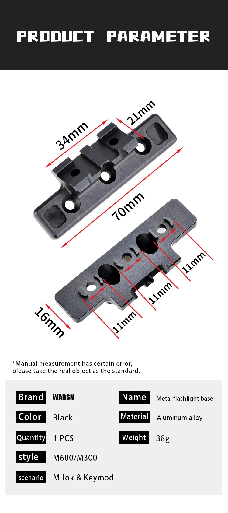 Nombre del artículo: KeyMod Mlok M300 m600 montaje de luz de exploración adaptativa compensada