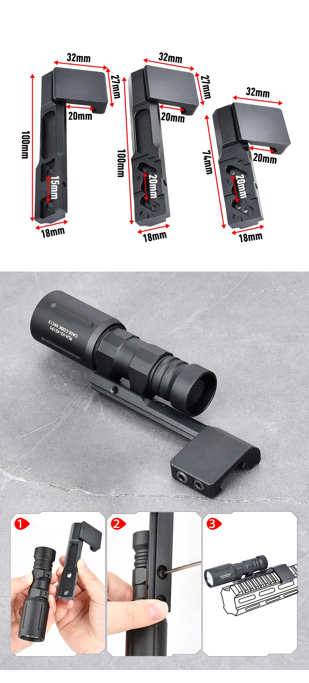 Linterna táctica M300 M600 PLHV2, montaje compensado M340 M640 Surefir SF, Base de luz de explorador, equipo Airsoft, accesorios para armas de caza