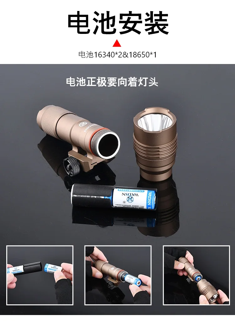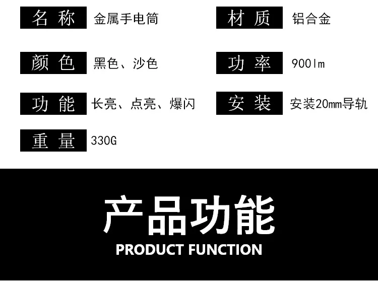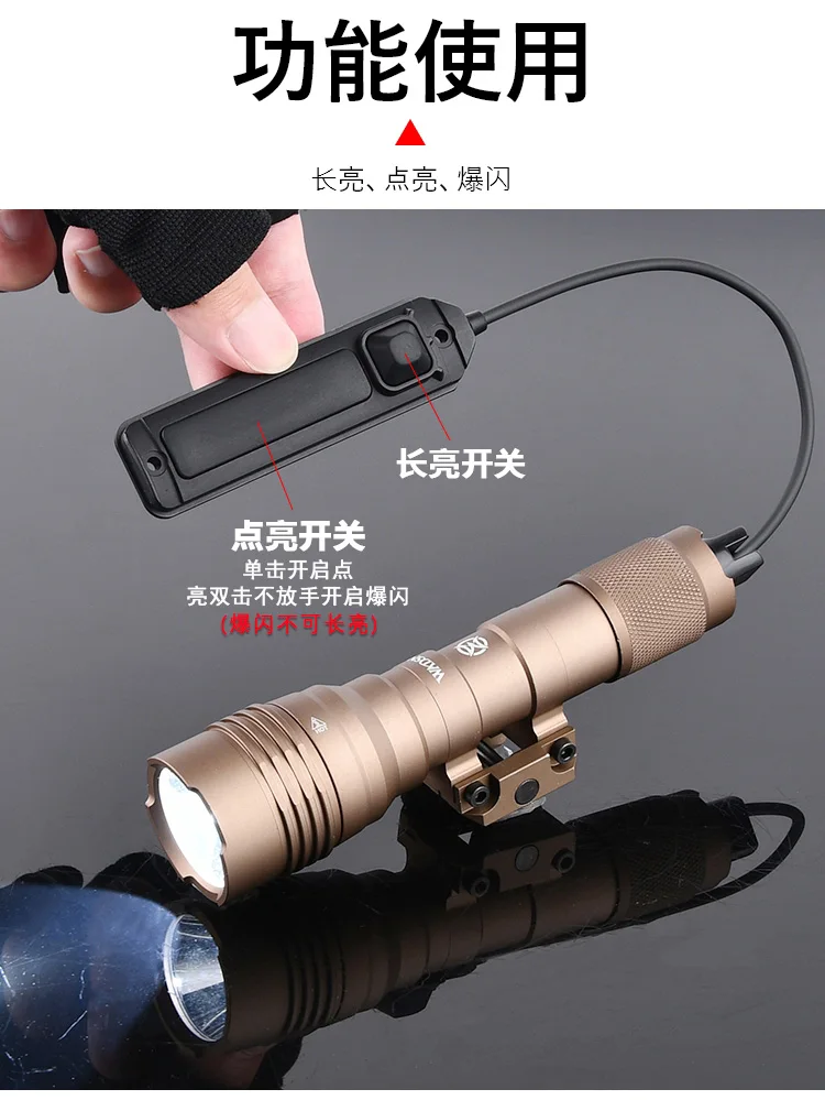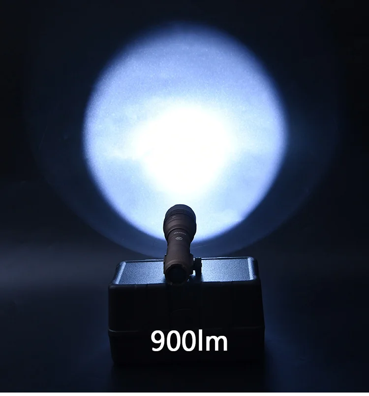 Equipada con una robusta bombilla LED blanca de alta potencia de 1000 lúmenes, esta linterna táctica garantiza una iluminación brillante de hasta 100-200 m.