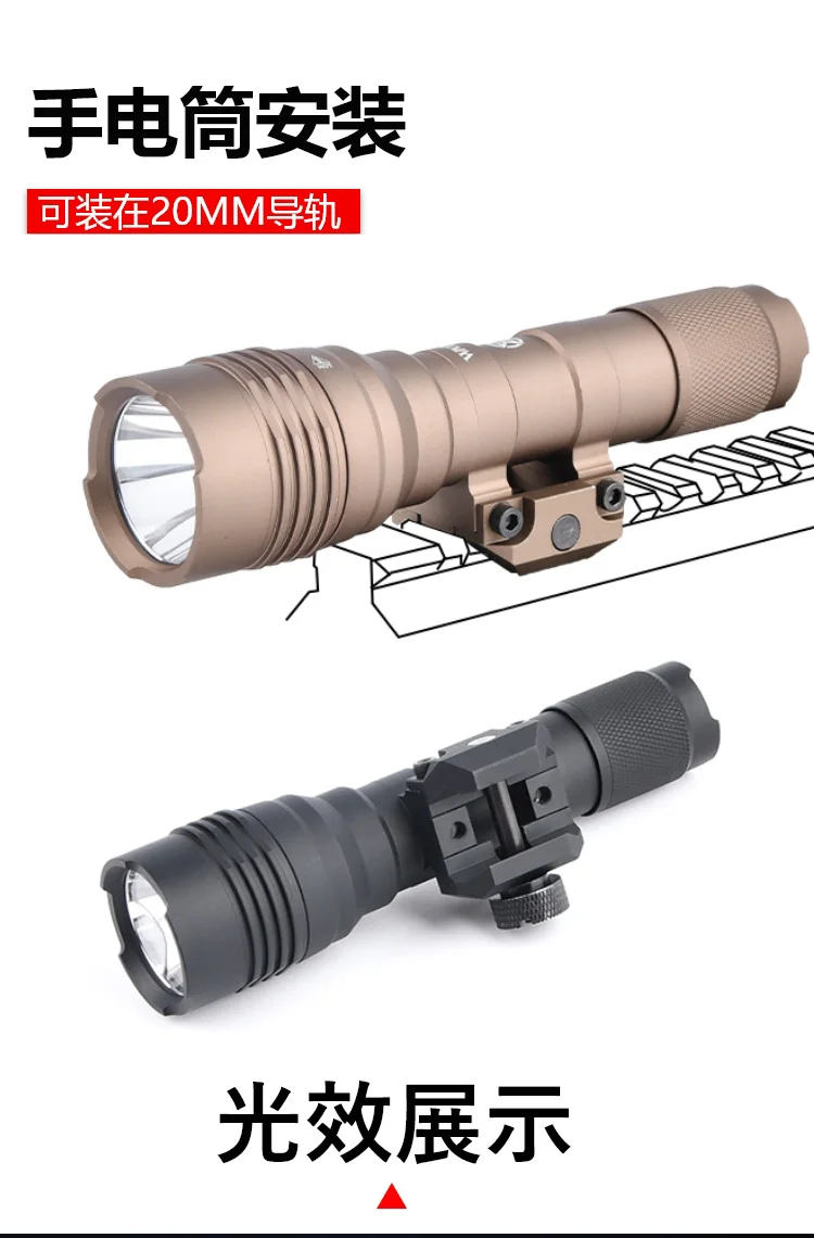 Diseñada para adaptarse a un riel de 20 mm, esta linterna táctica se puede montar fácilmente en armas, mejorando su utilidad para la caza y otros usos tácticos.