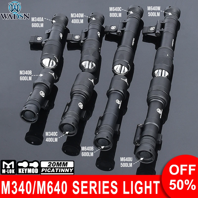 Linterna táctica de Metal Wadsn M640U M640W M340W luz estroboscópica de explorador M340C M640C lámpara de arma de caza para Mlok Keymod riel de 20mm