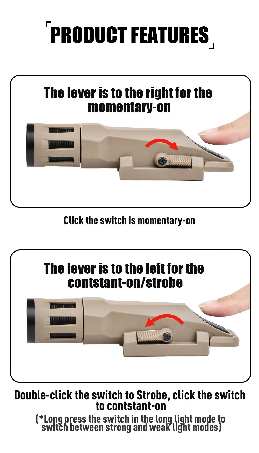 Linterna táctica militar larga WADSN WML, pistola de cazador, accesorio de pistola de caza constante/momentáneo/ajuste estroboscópico de 20MM
