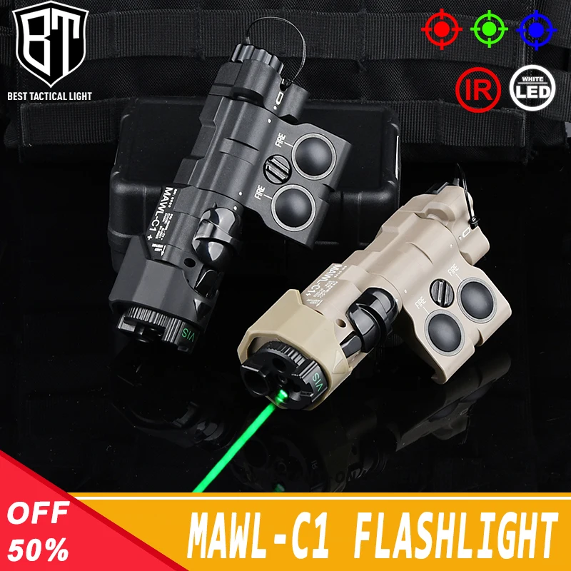 Linterna táctica militar de nailon para caza, luz láser IR de plástico con punto rojo, verde y azul, para armas de explorador, compatible con riel de 20 MM, MAWL-C1